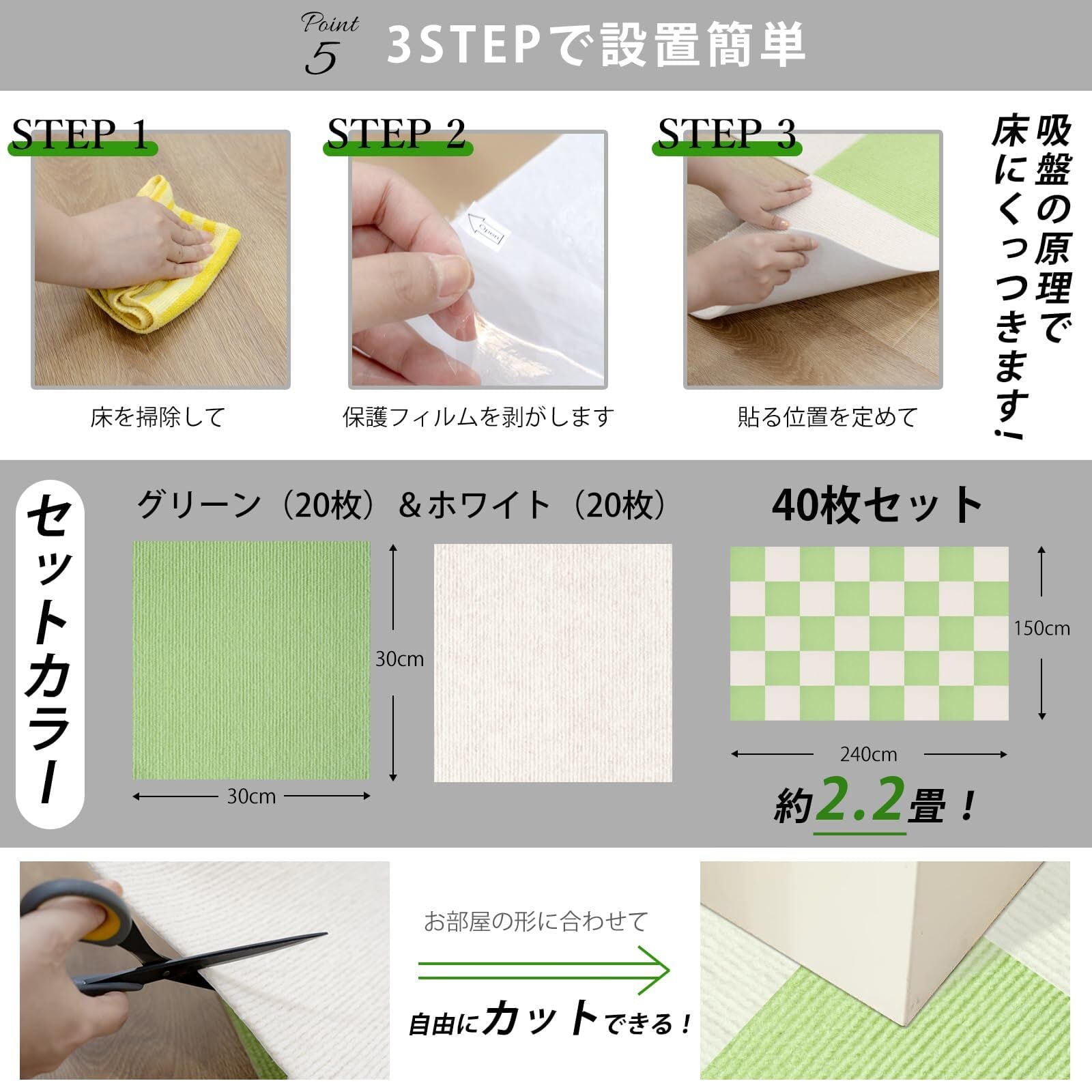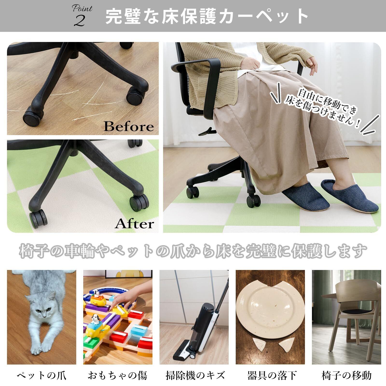 【床暖房対応・使いやすい】リビングや寝室はもちろん、キッチンのペット カーペット、玄関の汚れ防止マット、廊下の防音マットとしても使用可能。タイルカーペットは簡単にカスタマイズでき、どんな部屋のレイアウトにも対応します。さらに、地暖房間でも使えるので、寒い季節にも快適です
