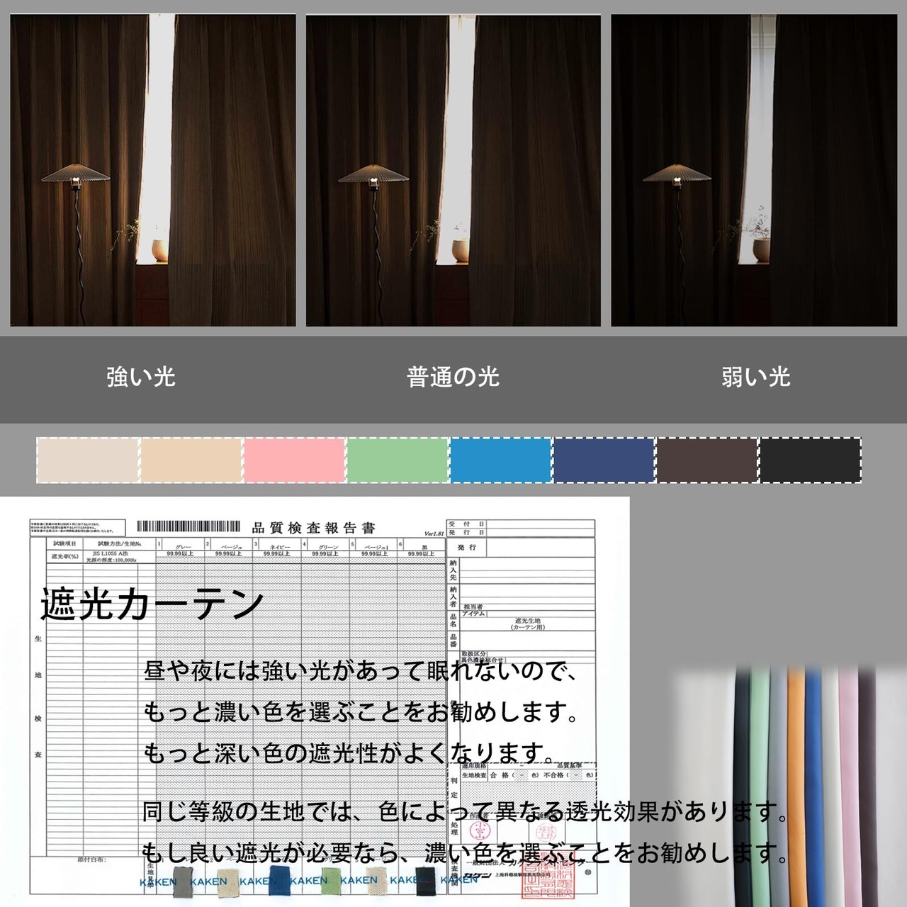 ◆一級遮光99.99%、材質:ポリエステル100%、遮光、断熱、保温、防音の高機能生地で、紫外線を遮断することができます。