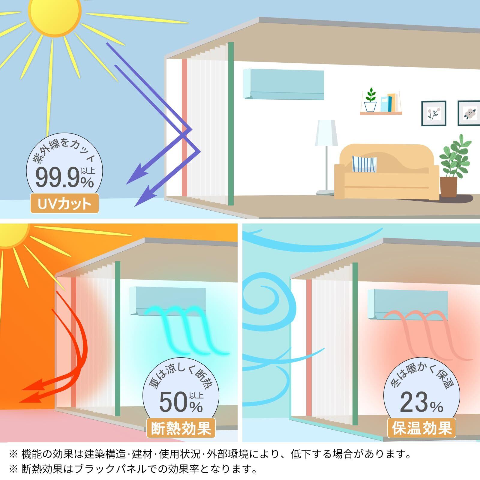 【遮熱保温】遮熱効果もバッチリ!夏は外から入ってくる熱を、冬は室内から熱が逃げるのを防いでくれる、オールシーズン使えるカーテンです。冷暖房の効果もアップするのでお財布にも優しい。