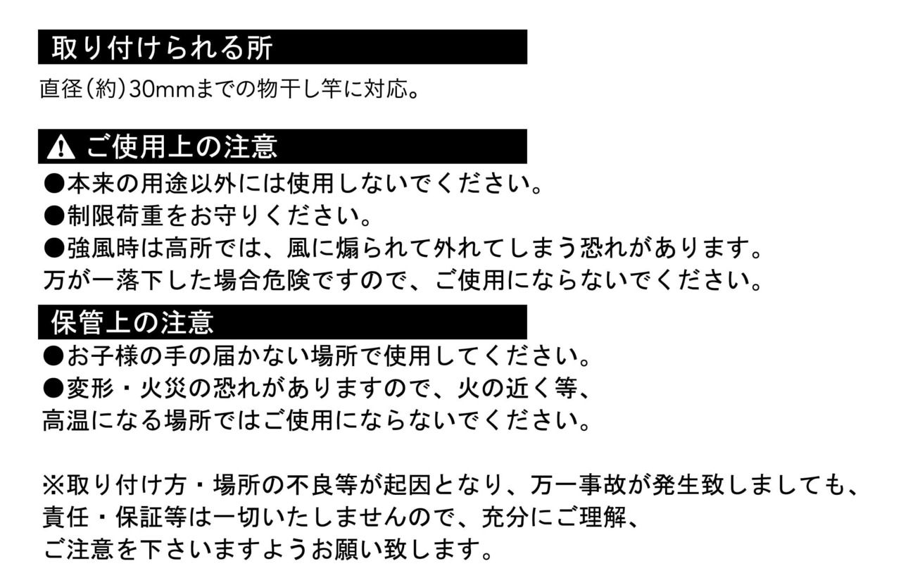 物干し竿に取り付けられる(直径 約30㎜までの物干し竿)