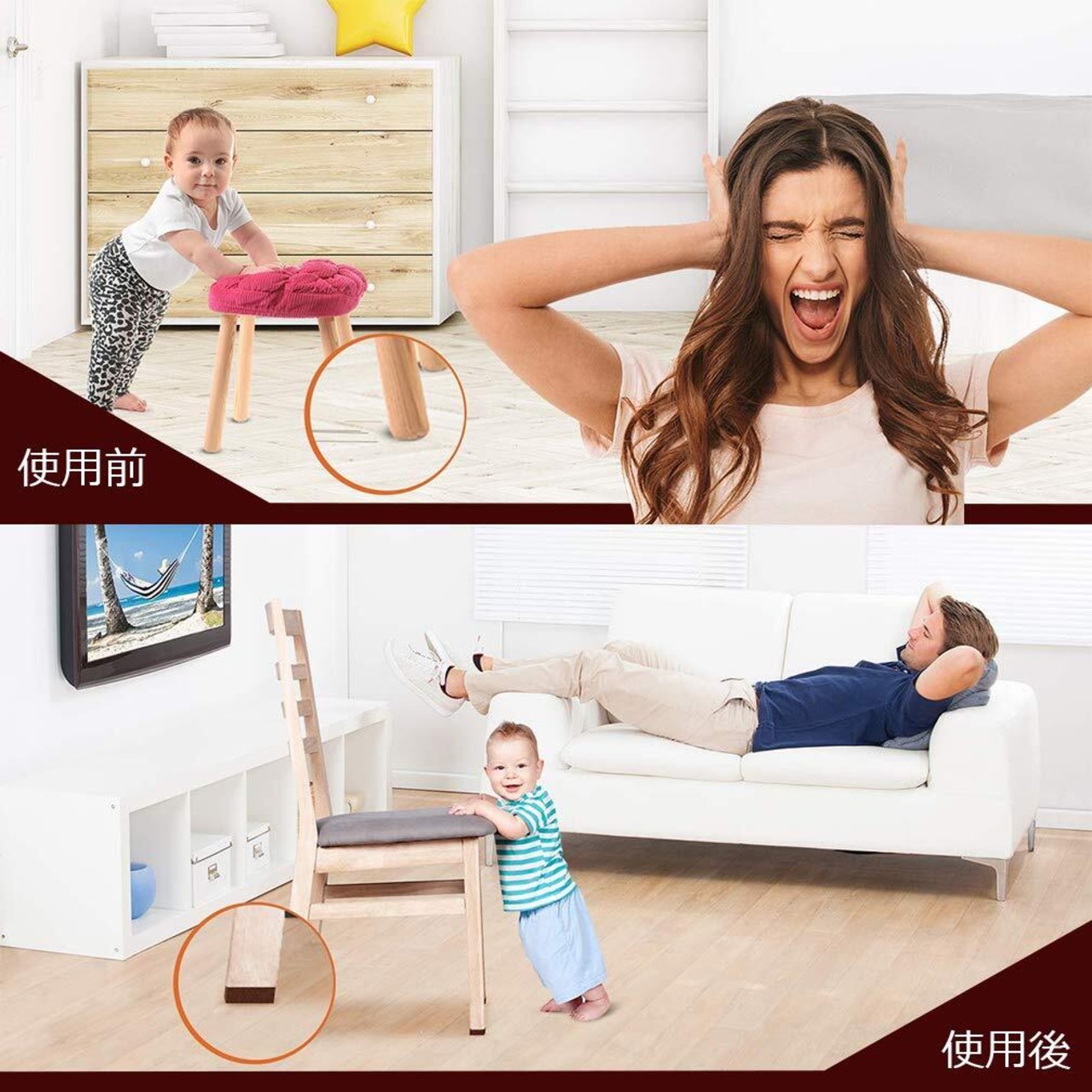 【エコパッド】 フェルトシールを使って摩擦や騒音を下げられるし、ベッド?ソファ?テーブルなどの重い家具がイージーに移動してなり、母親は掃除が楽になります。