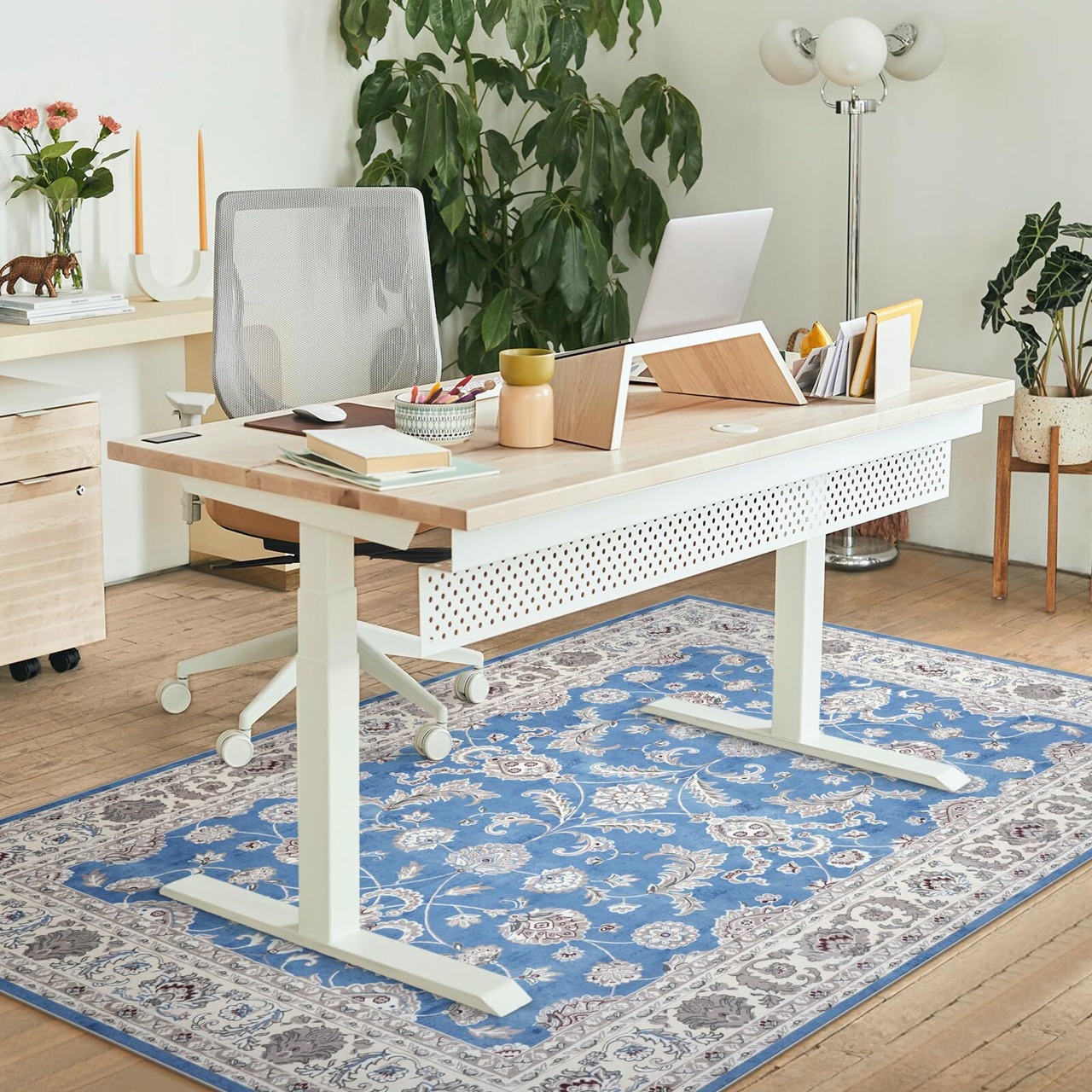 【在庫セール】HAOCOO カーペット 洗える ラグ 130х190cm 1.5畳 ペルシャ絨毯風 おしゃれ 耐磨耗性 滑り止め ホットカーペット対応 防音 室内用 ラグマット シェニール オールシーズン適用 抗菌防臭 花柄 ライトブルー