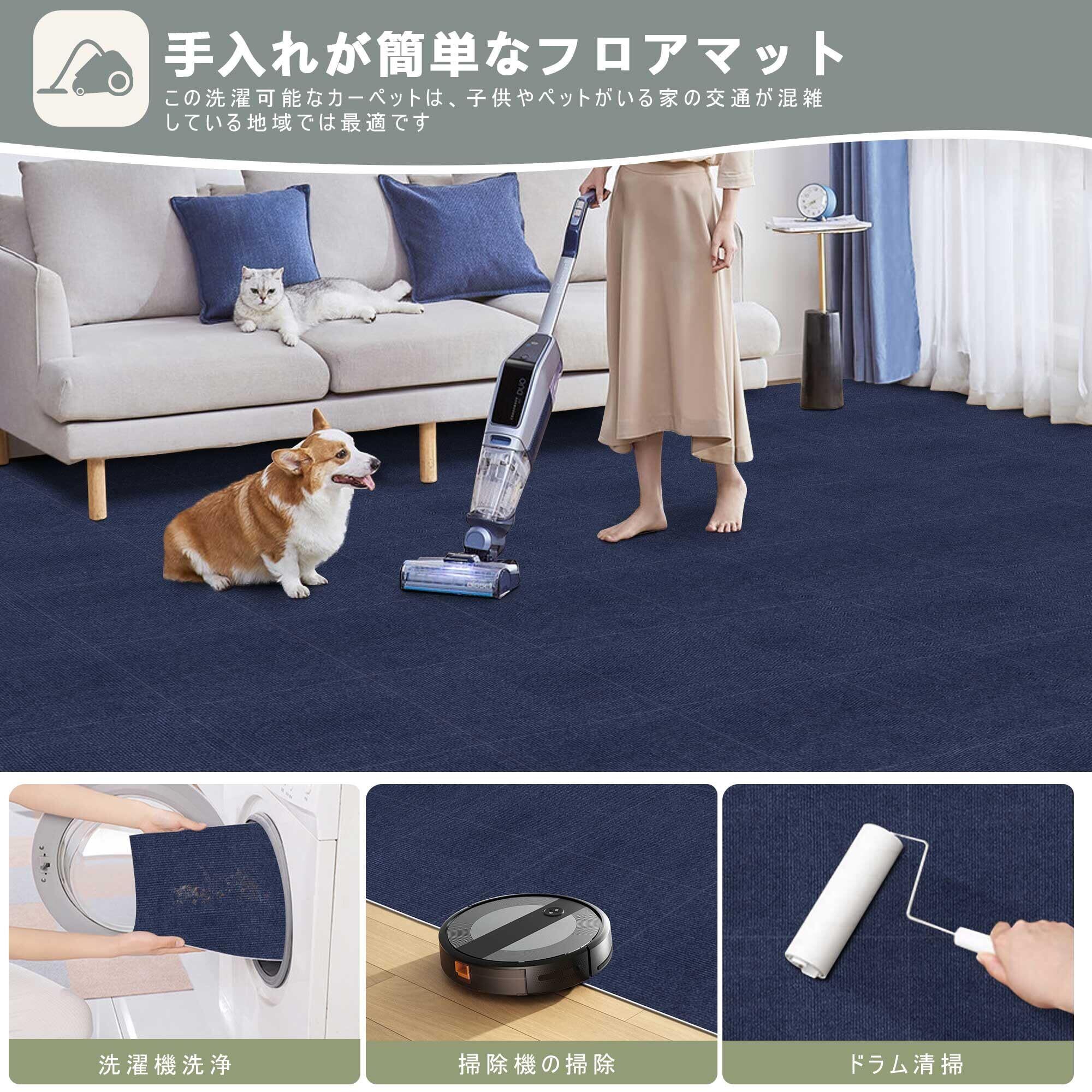【洗える・お手入れ簡単】掃除機やロボット掃除機に対応しており、お手入れが簡単です。汚れた部分だけ取り外して手洗いやスポンジで洗うと効果的です。(洗濯機の使用はお勧めしません)。軽く洗えて再利用可能で、床の傷や汚れ防止に最適で、簡単にお部屋の印象を変えることができます。
