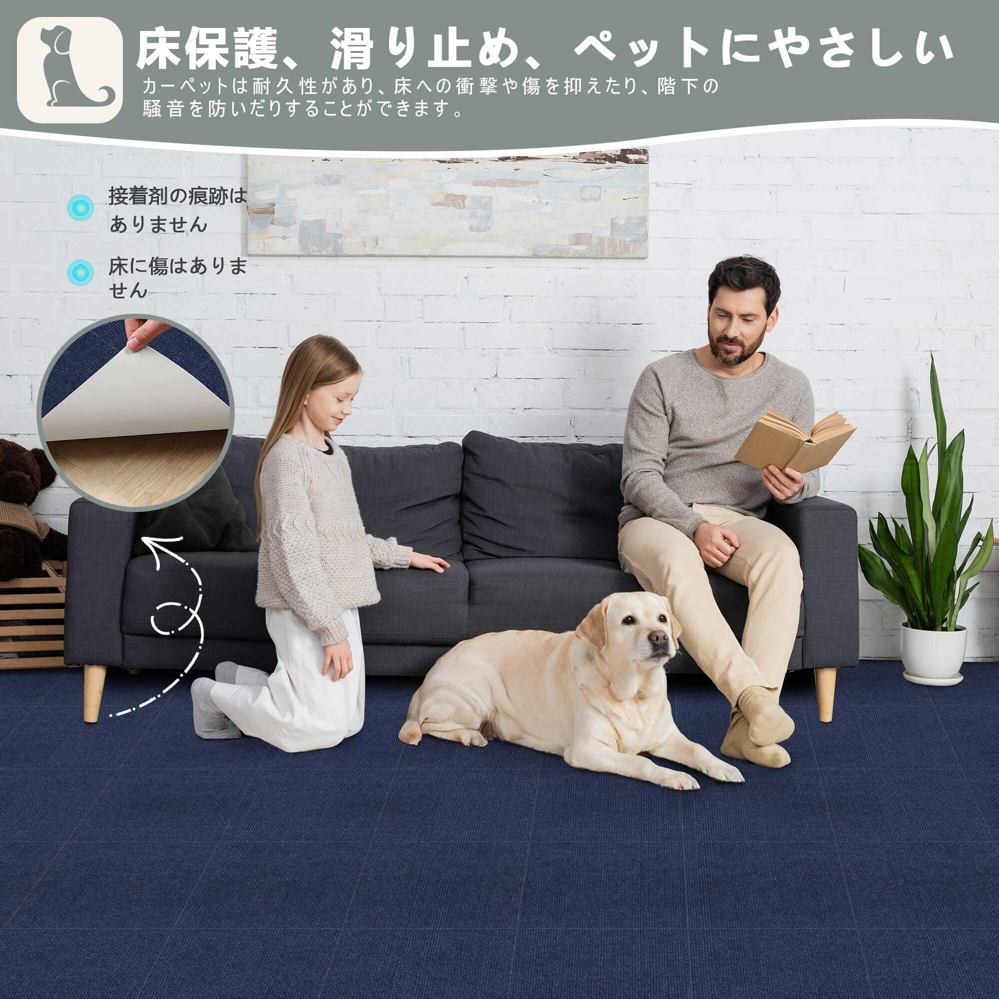 【在庫処分】【 限定ブランド】タイルカーペット ジョイントマット【30*30cm* 40枚】(約2.2畳)HAODEMI 大判 薄さ4mm タイル 床 子供 ペット フローリング カーペット 吸着マット カーペットタイルカーペット 足音 タイルマット DIY可能 自由にカット可能 洗える 洗濯 (ネイビーブルー)