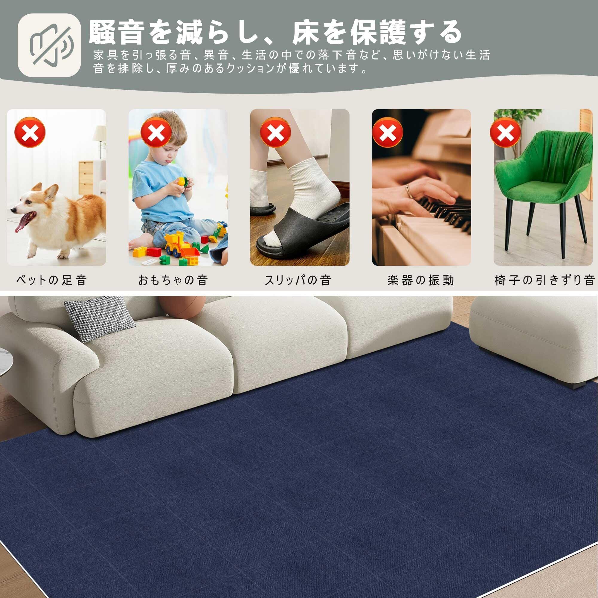 【 限定ブランド】タイルカーペット ジョイントマット【30*30cm* 40枚】(約2.2畳)HAODEMI 大判 薄さ4mm タイル 床 子供 ペット フローリング カーペット 吸着マット カーペットタイルカーペット 足音 タイルマット DIY可能 自由にカット可能 洗える 洗濯 (ネイビーブルー)