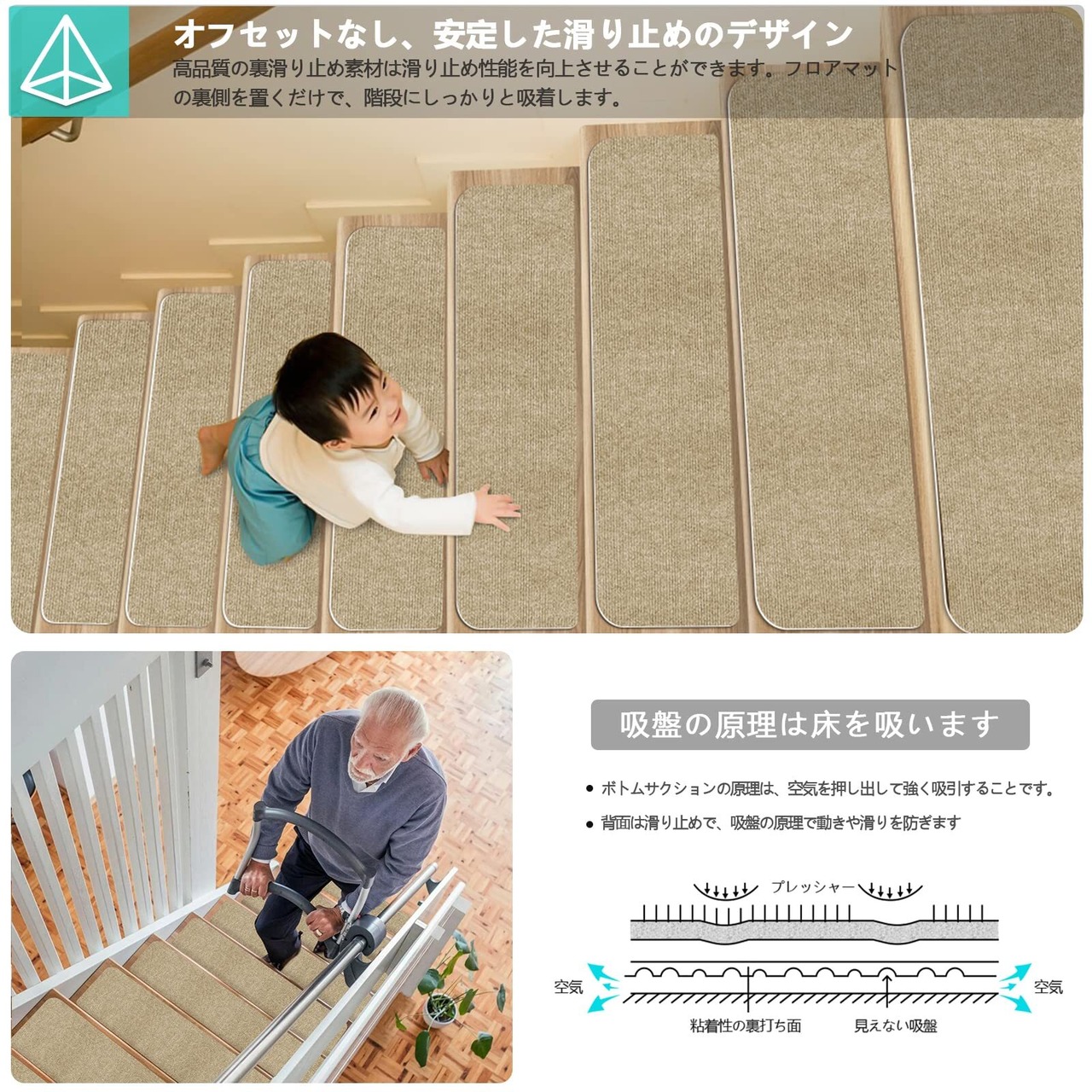 【特価セール】階段マット 滑り止め 階段用 ステップマットJAYFAN 69×22cmステップマット 滑りズレ防止吸着式 階段クッション無地 四季通用 りセット 吸着マット転倒防止 簡単取り付け 15枚入