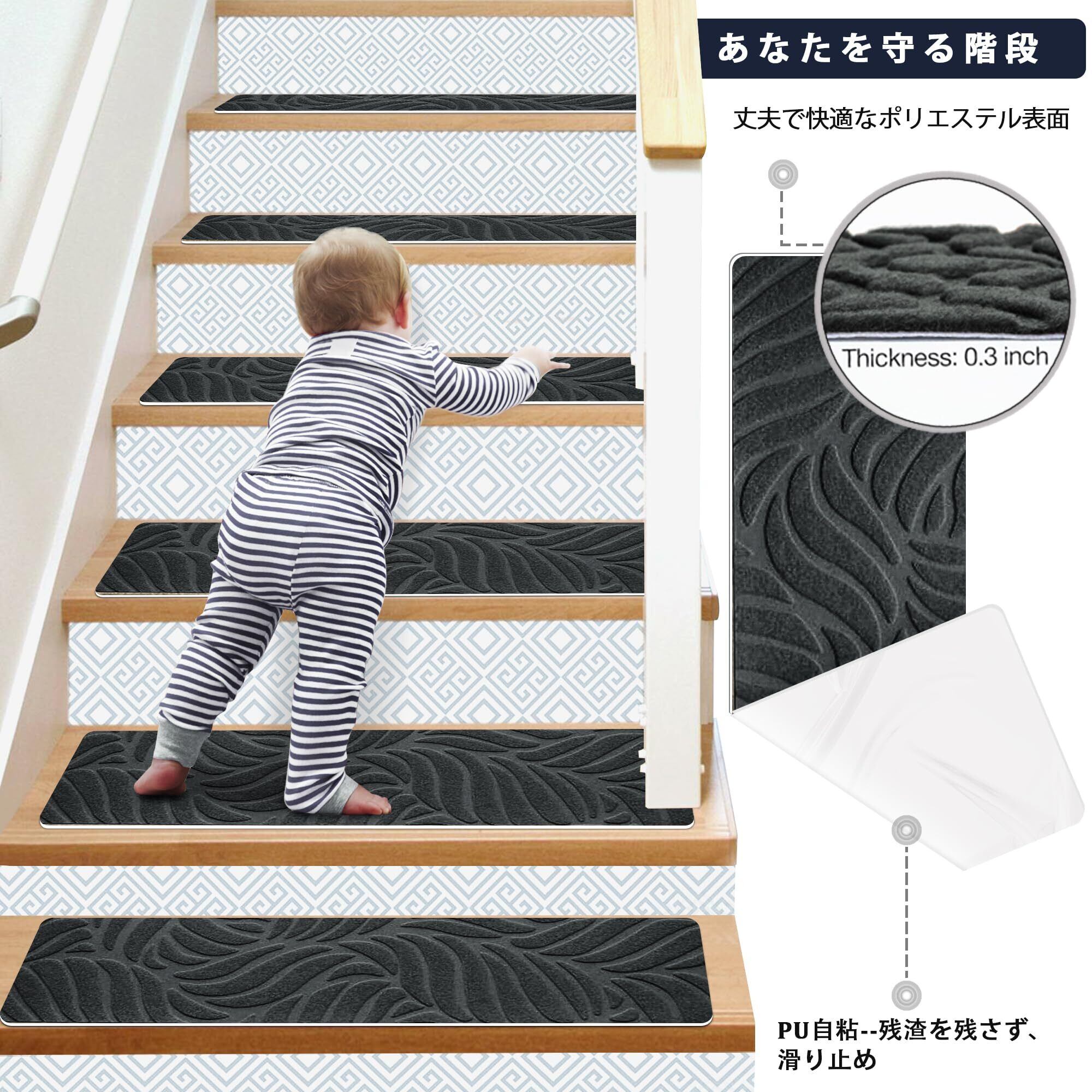 【滑り止め断熱/肌触りが良い】家は子供があり、階段が便利で、滑る恐れがありますか? 階段の滑り止めマットとして、素足でも冷たくない階段マットです。XIWEIYI 階段の滑り止めマットオールシーズン対応。