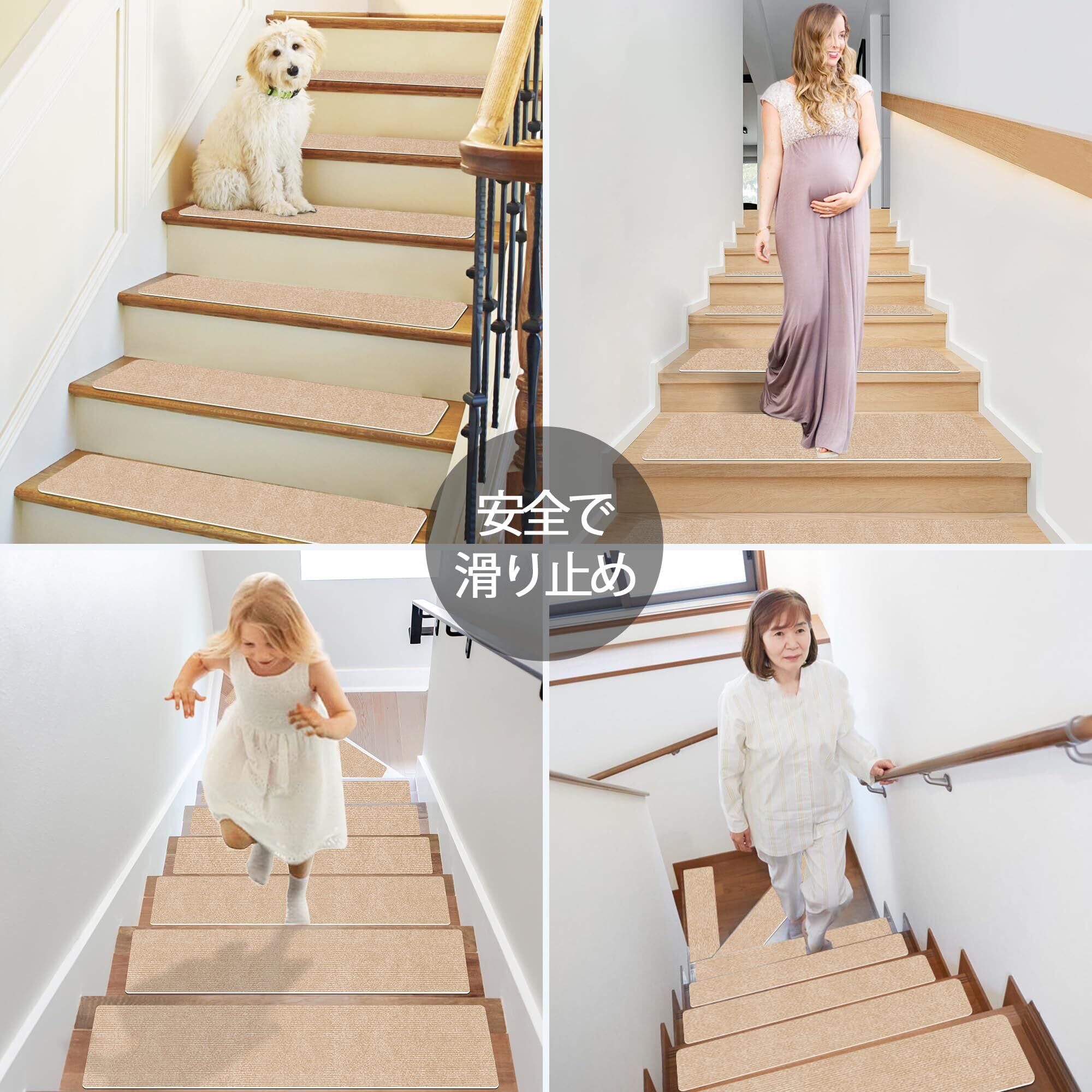 【在庫セール】【 限定ブランド】階段マット 階段用滑り止め70X22cm 【7枚入り】XIWEIYI 階段カーペット厚み4mm 階段敷き吸着マット床保護 ステップマット 階段クッション 転倒防止 キズ防止足腰負担軽減 ズレない子供や高齢者 ペットなどの安全対策に 猫犬階段滑り止めマット(ベージュ)