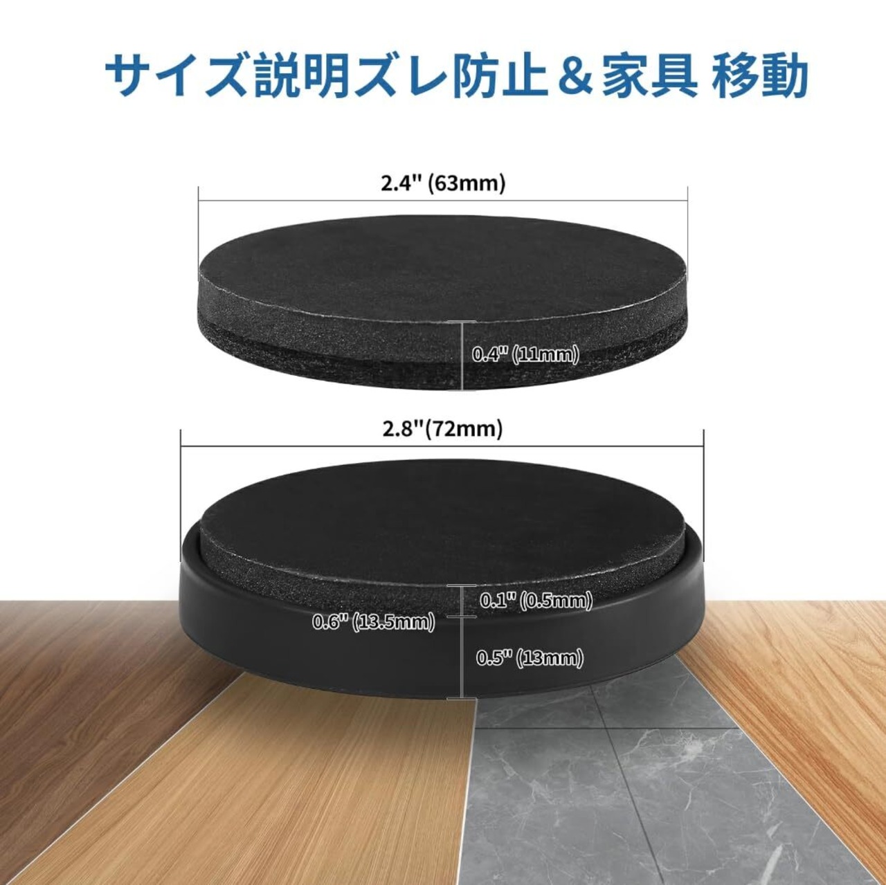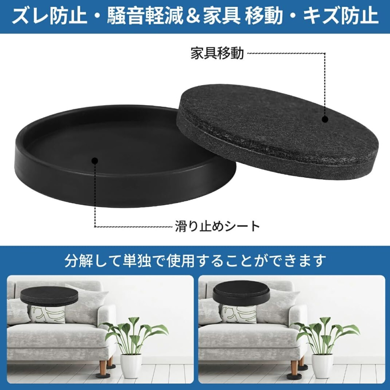 【簡単な取り付け】工具は必要ありません。家具の脚を防滑ゴム家具パッドまたはフェルトの上に置くだけで、床を保護し、家具の滑りを防止するか、家具をスムーズに移動させることができます。