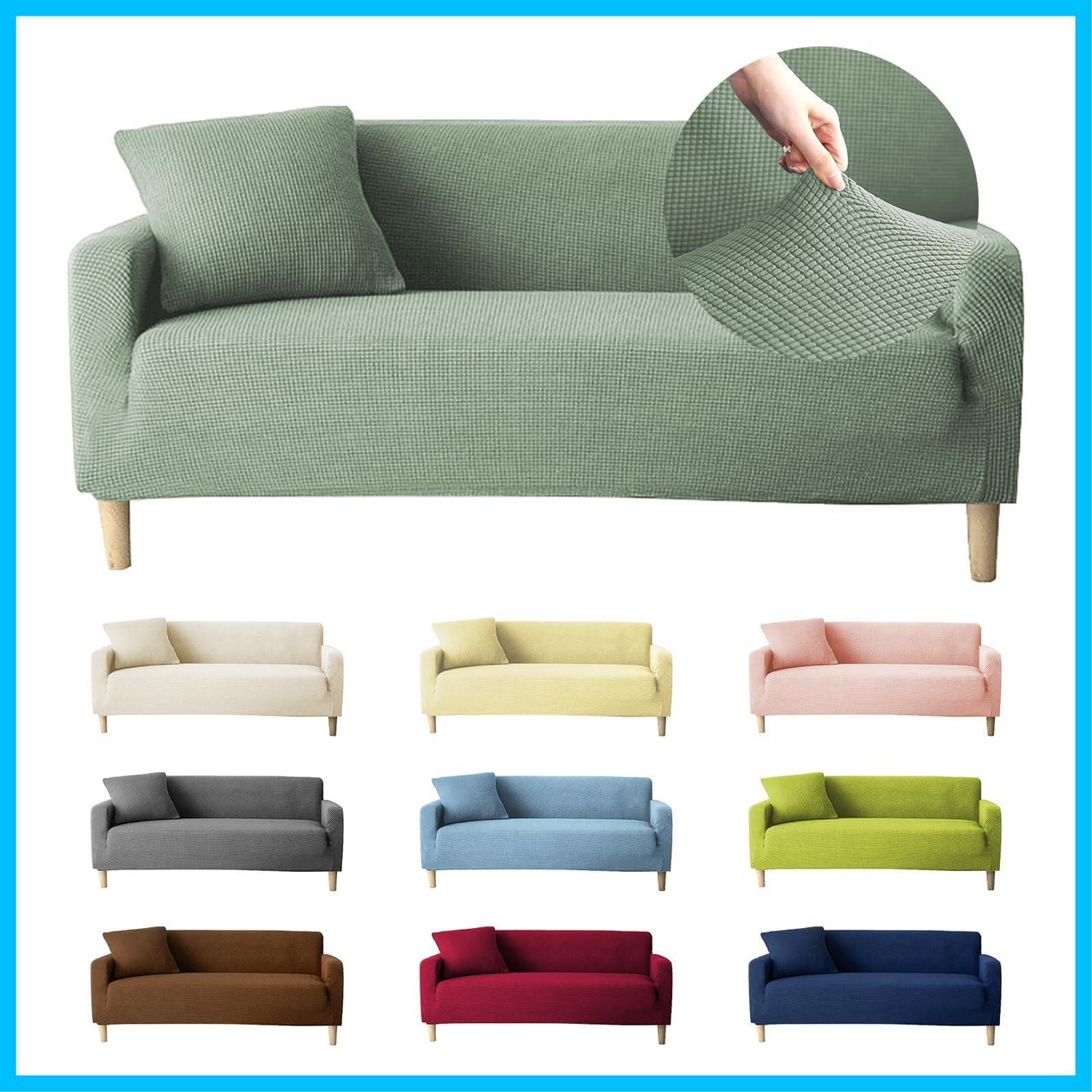 【特価商品】ソファーカバー マルチカバー クッションカバー付き 洗える 伸びる 3人掛け ソファ 保護カバー ストレッチタ 肘付き 北欧 ソファーベッド 椅子 カバー 取り付け簡単 ソファーシート おしゃれ ワッフル生地 滑り止め 通気性 汚れ防止 爪とぎ防止 四季兼用 防塵(グリーン)-M
