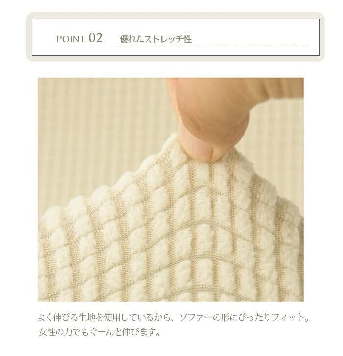 簡単着脱・使いやすい:ソファーに掛けて、簡単に切り替える。女性一人の力でも楽に、素材がぐんぐん伸びるから、ソファーの形に沿えるようにフィット。