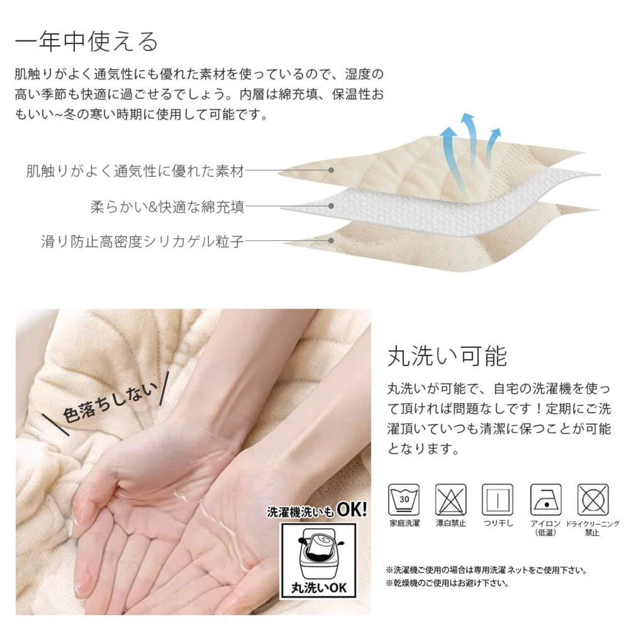 【触り心地がいい】高級生地に抗菌防臭加工を施した高品質なカバー。生地を美しく染め上げることができます。具の汚れやペットの毛から保護します。肌触りがよく通気性にも優れた素材を使っているので、湿度の高い季節も快適に過ごせるでしょう。保温性おもいい、冬の寒い時期に使用して可能です。一年中使えます。