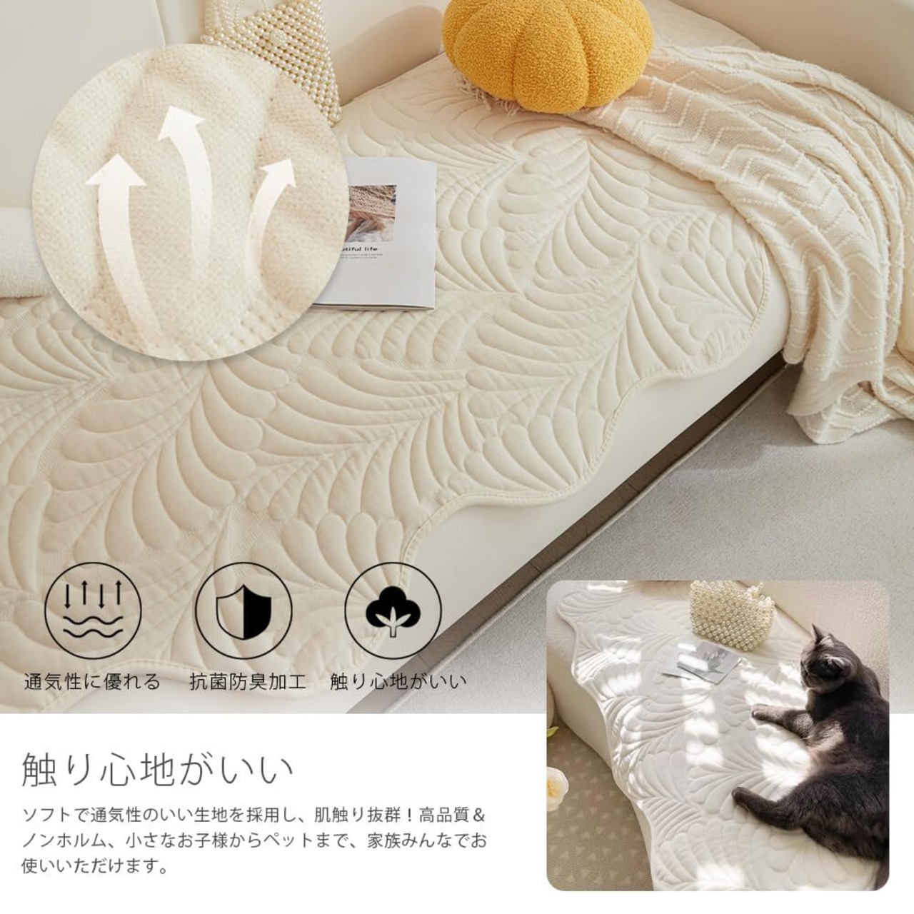 【在庫処分】ソファーカバー マルチカバー ソファパッド 肘なし 肘あり兼用 4人掛け掛けるだけ 滑り止め 耐磨性 洗える かわいい 高級 取付簡単 通気性 傷防止 爪とぎ防止 抗菌防臭 吸汗速乾 四季兼用 ペット用(90*180 アイボリー(葉紋様))