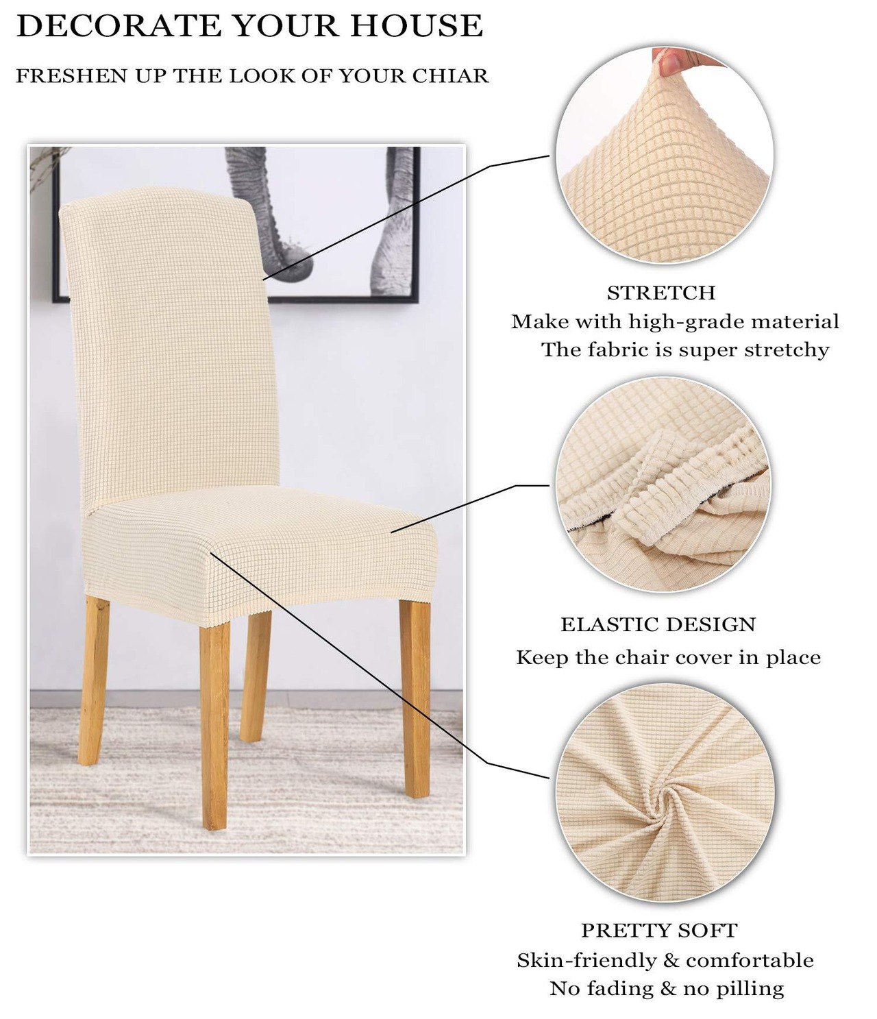 デザイン:スタイリッシュでシンプルなスタイル、リビングルーム、レストラン、キッチン、ホテル、結婚式、その他の行事を飾るための優れた選択肢。 そして伸縮性がある設計は滑走を防ぐことができます。