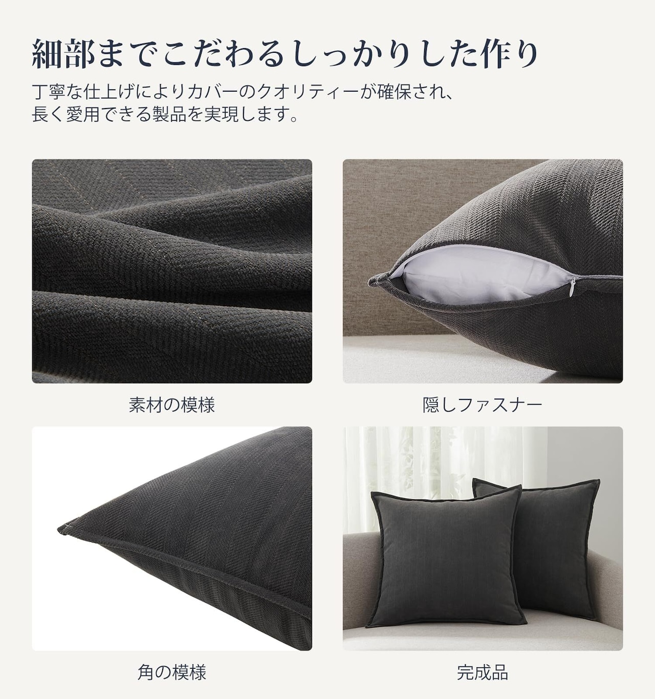 クモリ(Kumori) クッションカバー 2枚セット 45X45cm 北欧 おしゃれ 無地 シンプル 隠しファスナー 丈夫な生地 柔らかい ソファ背当て 装飾枕カバー 座布団カバー 2枚組 45X45cm ダークグレー