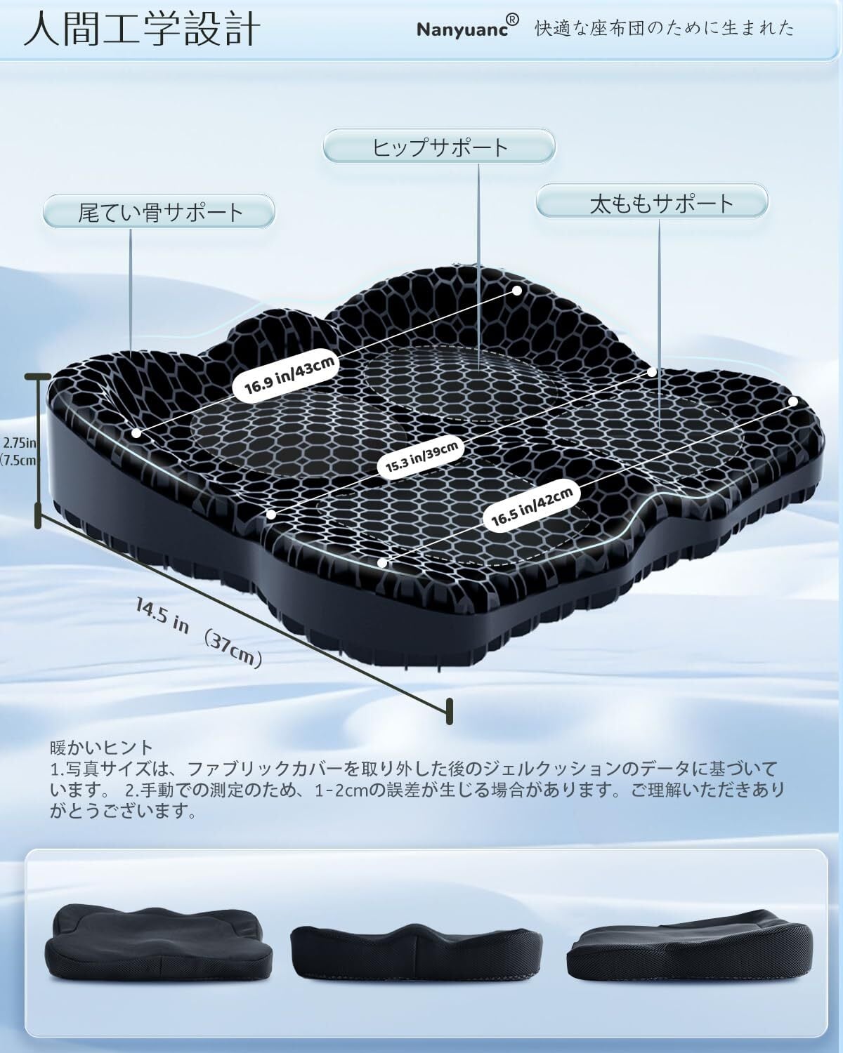 【どこでも活躍】 Nanyuancジェルシートクッションは、オフィスチェアだけでなく、車のシートや車椅子などさまざまな座席にも簡単に取り付けることができます。オフィス、車内、屋外などあらゆるシーンで、快適な座椅体験を提供します。正座、胡坐、体育座りなど、さまざまな座り方に対応します。ぜひ一度お試しください!