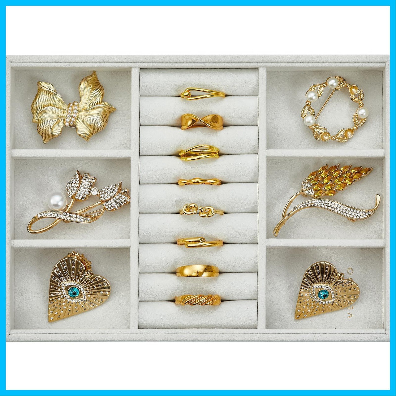 取り外し可能な仕切り - Vlandoのジュエリートレイは、指輪や耳飾りからブレスレットやネックレスまで、さまざまなジュエリーに合わせて設計されています。個人の貯蔵ニーズに合わせてコンパートメントのサイズを調整できます。