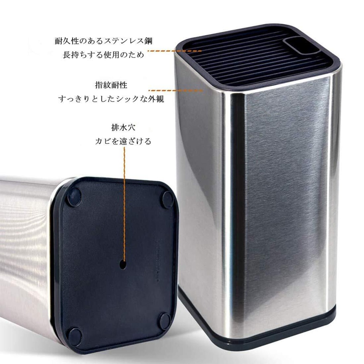 ステンレススチール製ケース付きの食品グレードの安全なプラスチックでできたユニークな二重壁の斜めのスロットは、ブレードを傷つけることなくナイフをしっかりと保持します。ブロックのナイフエッジを損傷する可能性はありません。ステンレス表面は指紋がつきにくい加工です。
