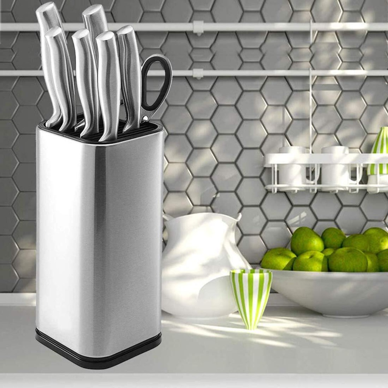 包丁スタンド 通用サイズ 包丁立て ナイフスタンド ステンレススチール スクエアソフトタッチナイフホルダー 安全 スペースセーバー ナイフ収納用 キッチン収納 抗菌・多機能・便利 取り外して清潔する