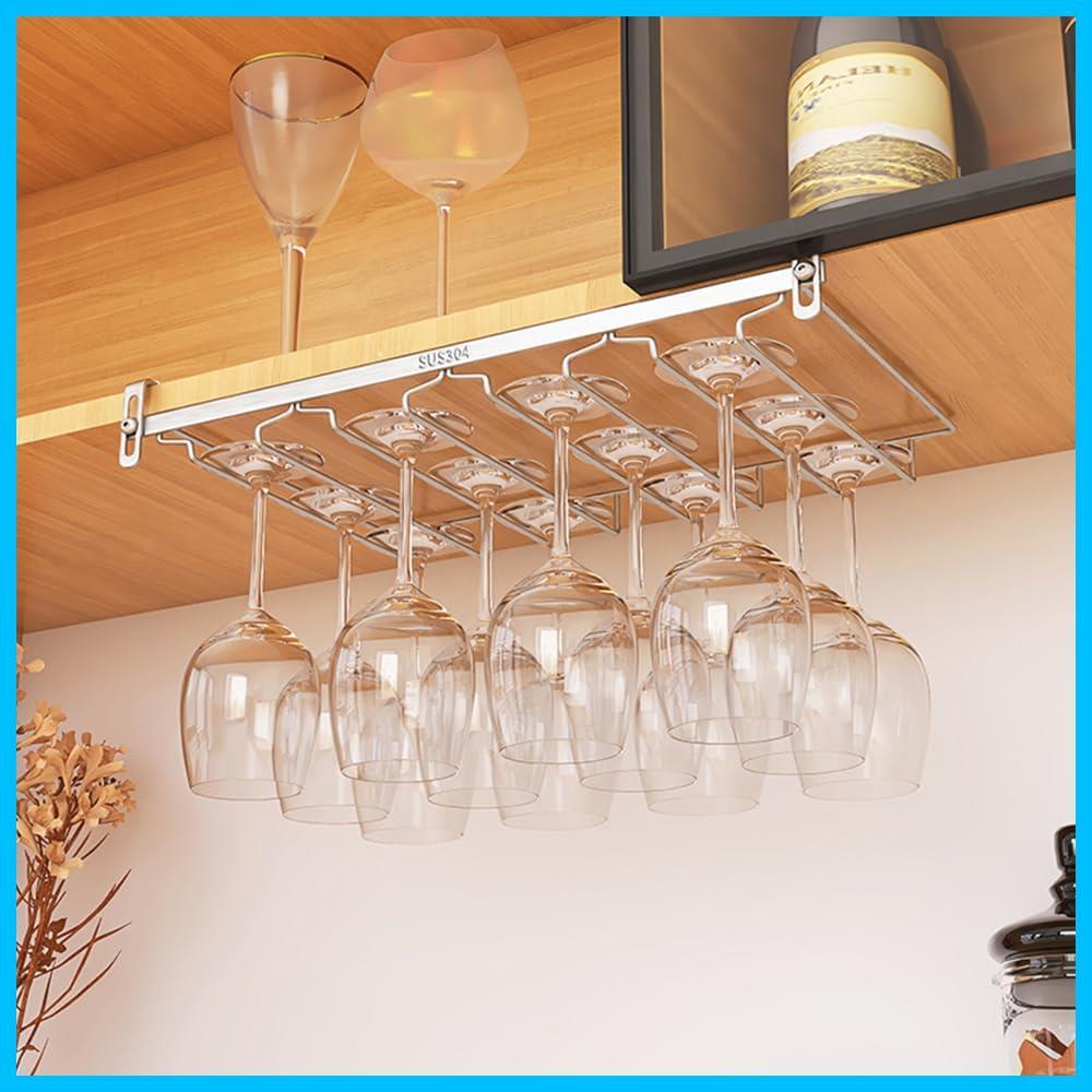 【特価セール】GeLeCo ワイングラスホルダー 棚厚さ調節可能 ワイングラスハンガー 吊り下げ 穴あけ不要 (4レーン 12個収納可能)