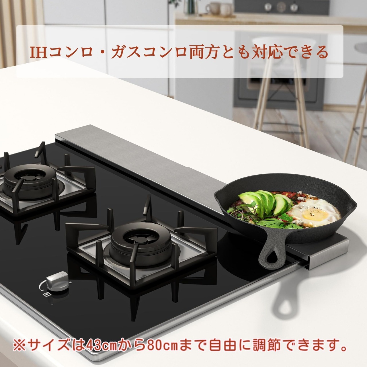 【人気商品】Mericodan ガスコンロカバー 排気口カバー ステンレス 伸縮式 (33-65cm) レンジガード 油はねガード コンロカバー キッチン 収納 お手入れ簡単 ガスコンロ/IH両対応