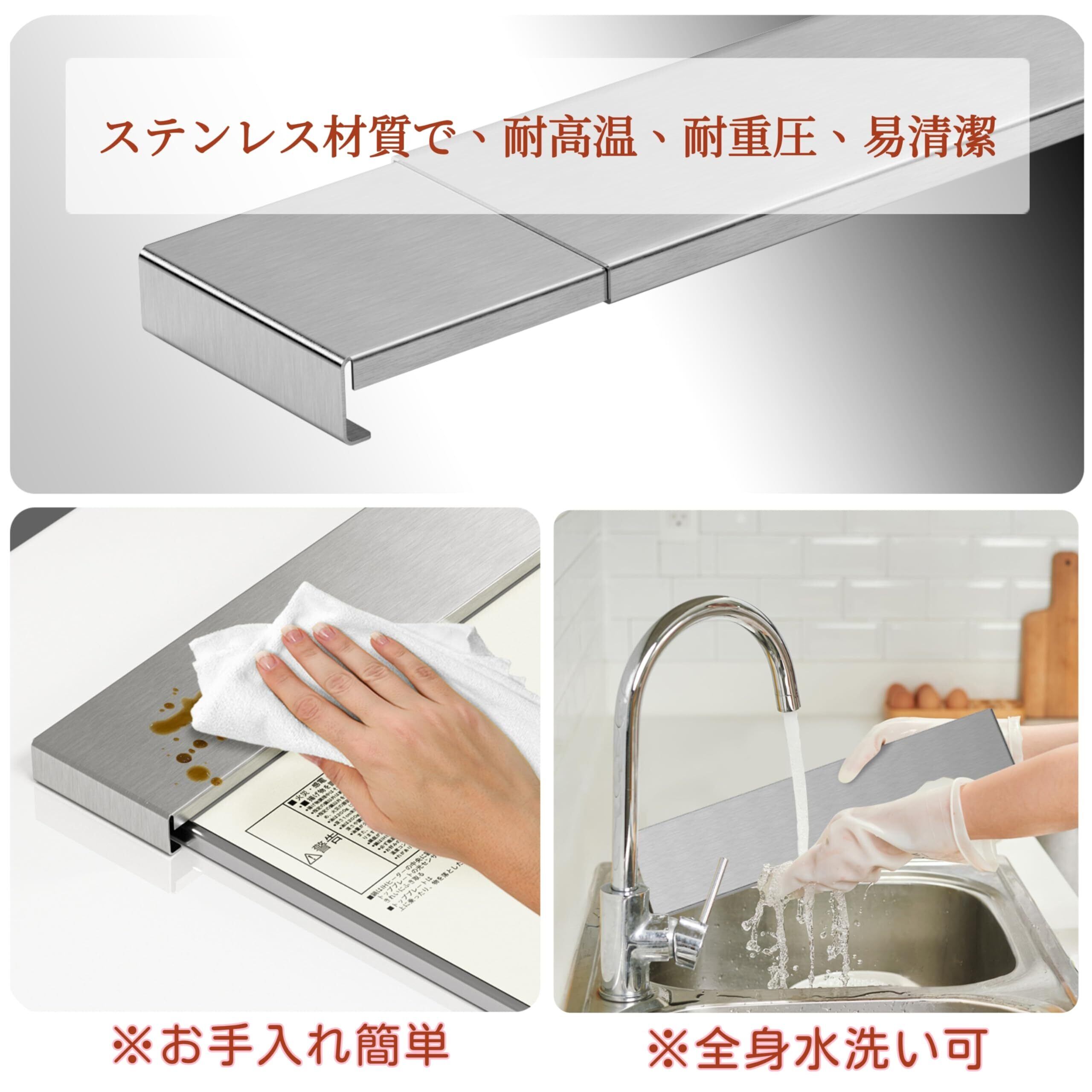 【すべてに耐えるステンレス素材】 高級ステンレス材質を採用しています。腐食や高温に強く、長期間安心してご使用いただけます。さらに耐荷重性もあり、鍋などを置いても問題なく、コンロ奥の空間を効率的に活用でき、キッチンの収納スペースを増やします。