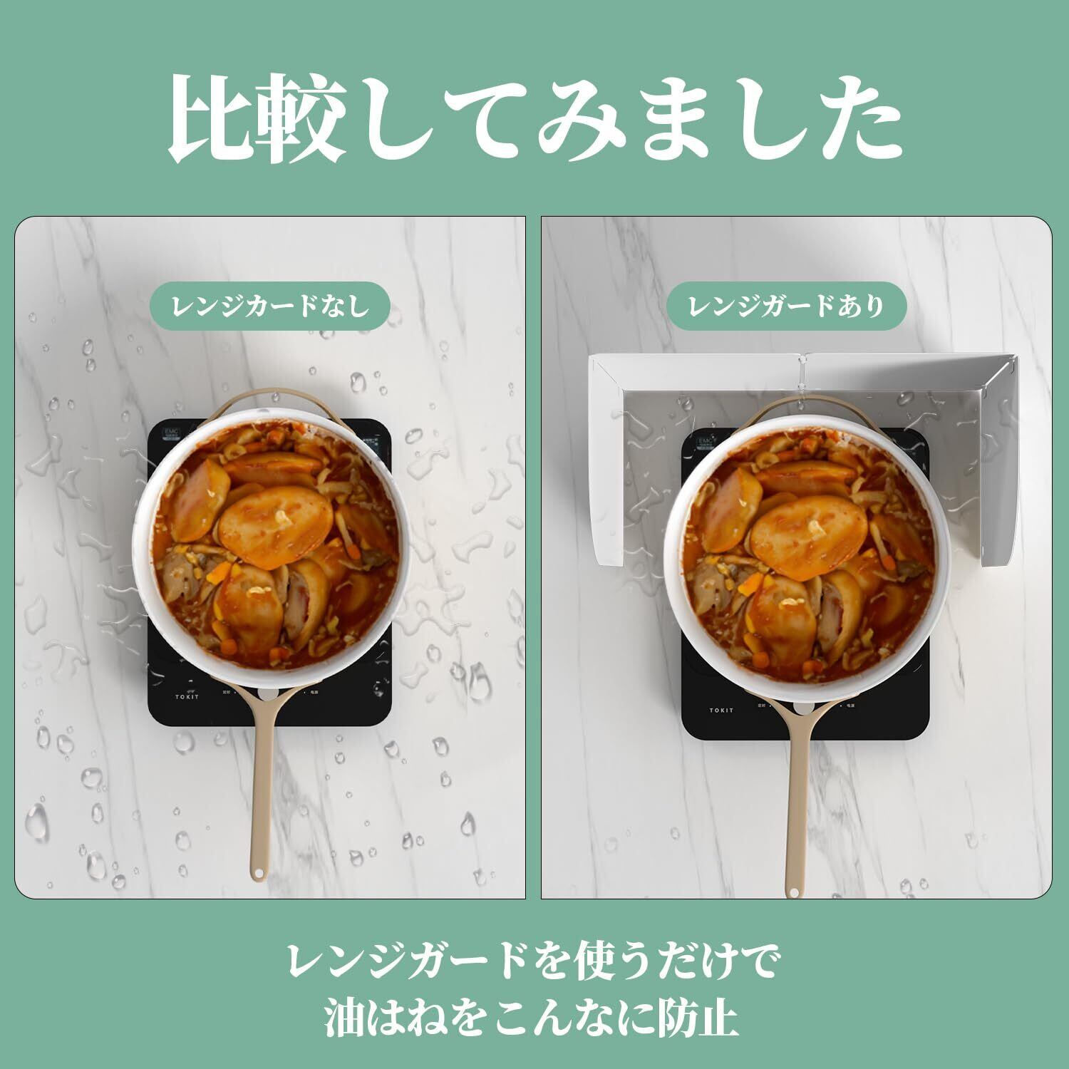 【多層構造、耐久製アップ】当油はねガードは多層構造を加工され、防錆、防腐、長耐久性がもちろんのことで、油はねガードの表面には特殊加工を加えされ、表面が滑らかであるだけではなく、傷つきにくくて火があたっても変形しにくいです。汚れても布で簡単に拭いたり、水で直接すすいだりできますので、面倒な掃除作業が減り、便利です。
