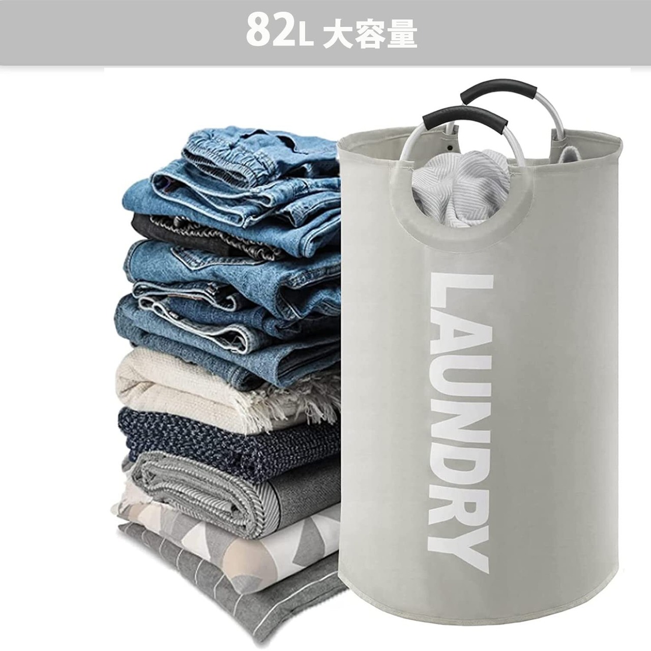 【数量限定】YOUDENOVA ランドリーバスケット 大容量82L せんたくかご 85%防水性 折りたたみ 撥水加工 耐荷重15KG 洗濯物入れ 取っ手付き ランドリーバッグ 衣類収納 寝室 脱衣所 リビング クローゼット内 幅38×高さ72(cm) (ライトグレー)