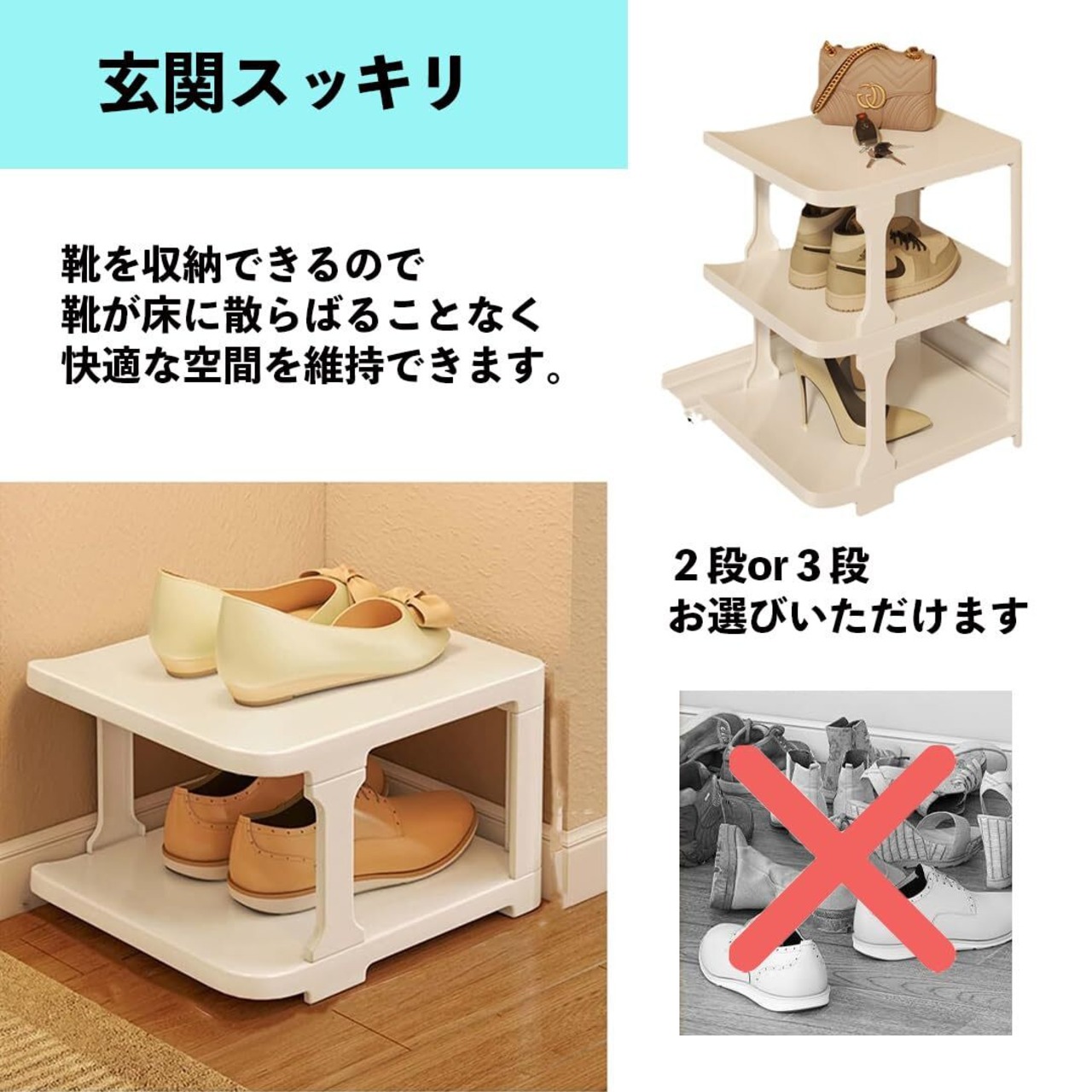 【多目的用途シューズラック】玄関や廊下だけでなく、リビングルームや寝室などでも使える多目的な収納アイテムです。靴だけでなく、小物や本などの収納にも役立ちます。組み立て式なので自分好みの高さや配置に調整でき、使い勝手が良いです。