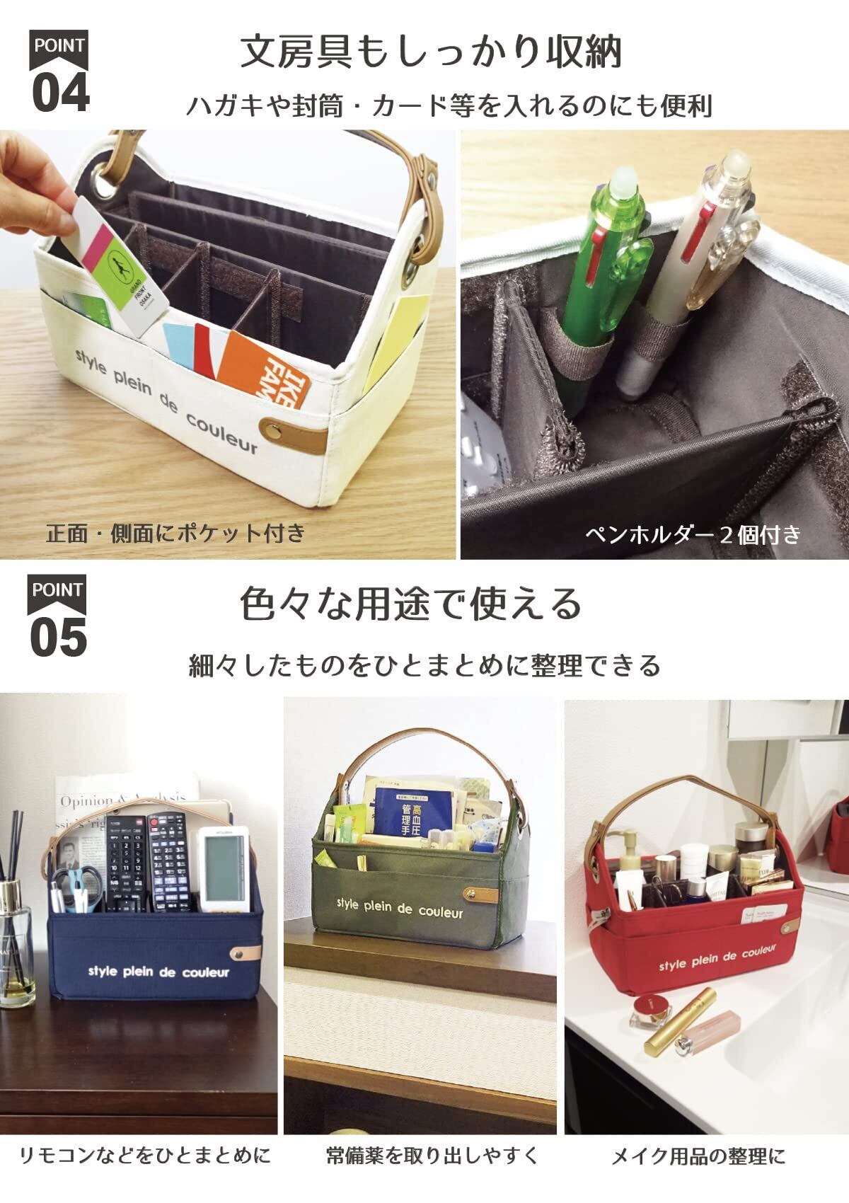 ️【組み立て簡単】底板を入れて仕切りを面ファスナーで固定するだけの簡単組み立て。仕切りは可動式で入れる物のサイズに合わせて幅を微調整できます。取り外し出来る持ち手付き。片手でサッと持ち運びできます。
