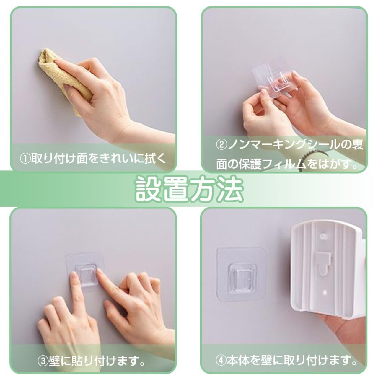 【取り付けしやすい】強力な粘着タイプで、壁に傷をつけることなく簡単に取り付け可能。粘着テープは粘着力が強く、長期粘着力があります、外れにくい。専用の工具や壁への穴開け不要。
