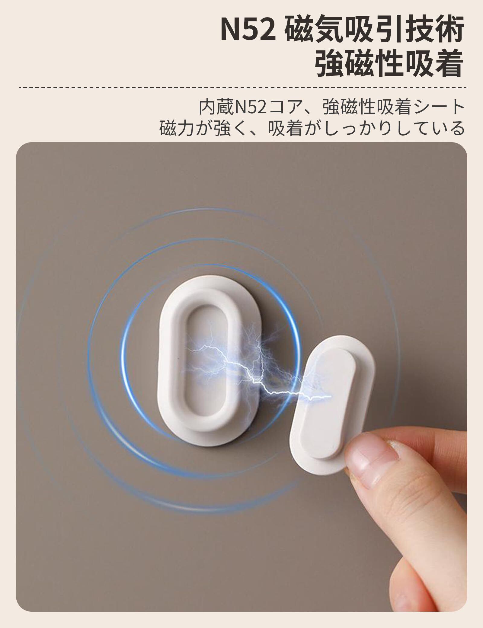 【革新的磁気吸引設計】磁気リモコンスタンドには強力な磁石とカードスロットが付いており、リモコンをしっかり固定し、リモコンの落下を防止することができる。 【磁石吸着】このリモコンスタンドには吸引力の高い磁石が搭載されており、リモコンを近づけると吸着して戻ってくる機能で、リモコンの整理が簡単になり便利になります。 【コンパクトでスタイリッシュ】重量:わずか12 g、サイズ:43*26*10 mm、コンパクトでスペースを占めません。シリカゲル製の筐体を採用し、外観はスタイリッシュでシンプルで、部屋の雰囲気を損なわず、どんな家にも適しています。 【取り付け簡単】ドリル不要、工具不要。背面ゴムをはがすだけで、リモコンスタンドは壁、ガラス、タイル、ベッドサイドなどの平らで垂直で滑らかな表面に取り付けることができます。 【幅広く適用】フォトフレーム、ファンリモコン、エアコンリモコン、Apple TVなど、さまざまなサイズのリモコンに適しています。アイデアを発揮して、必要なものをぶら下げます。家庭、賃貸者、オフィス、学校、商店の理想的な選択であり、スペースと時間を節約するために整然としています。