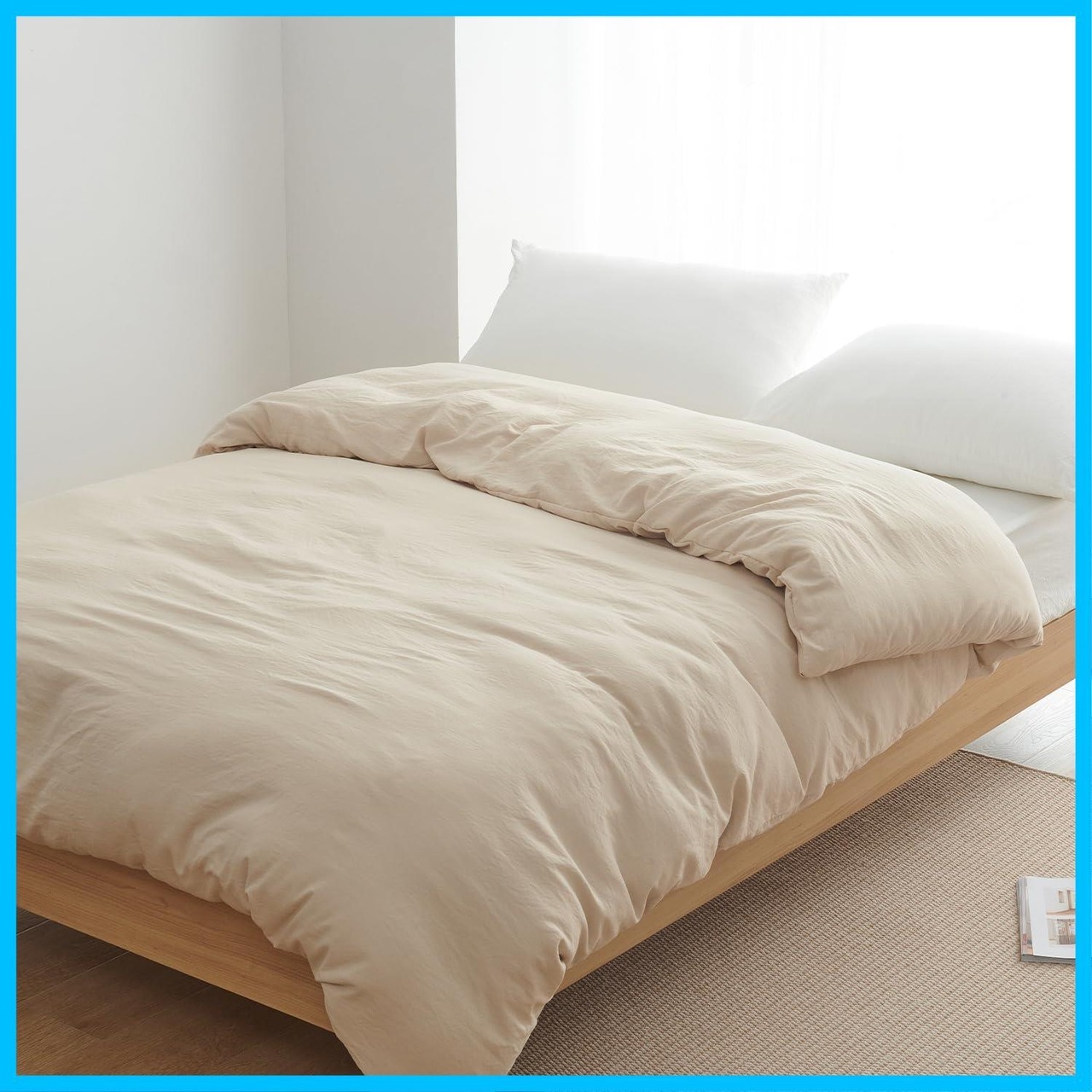 【特価セール】クモリ(Kumori) 掛け布団カバー シングル 洗いざらし 吸湿速乾 素肌にやさしい 柔らかい しっとり ピーチスキン シワ加工 丸洗いOK オールシーズン 布団カバー 掛ふとんカバー (シングル・150X210cm アイボリー)