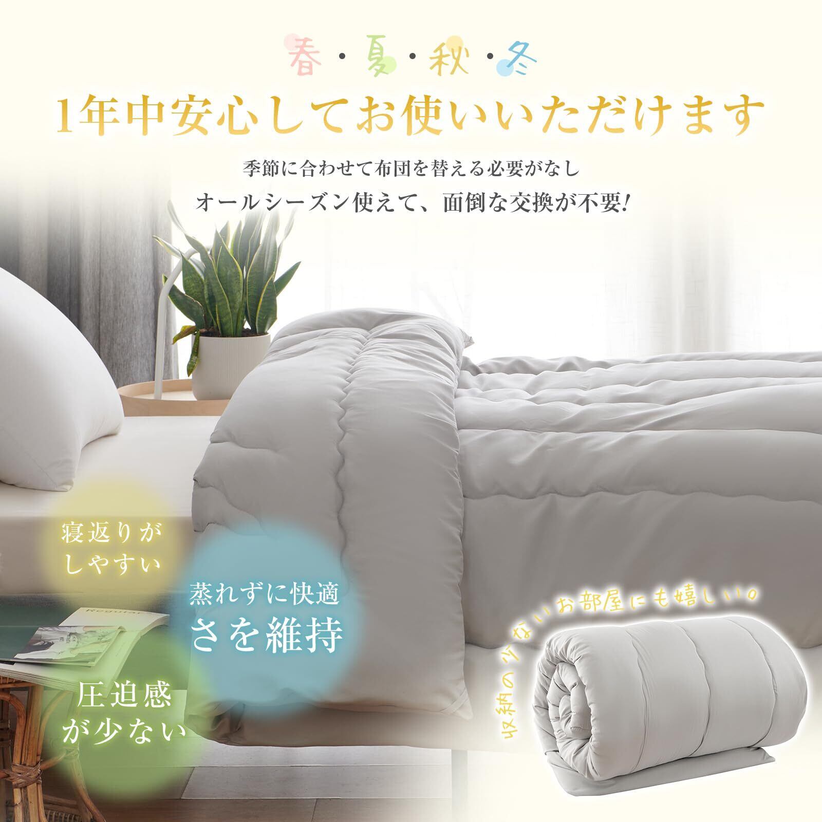 【暖かくて軽い! オールシーズン 掛け布団】薄くて軽いのに暖かい!暖かさをキープする同時に、圧迫感を与えることはありません。3D中空中綿を使用した掛け布団は羽毛の臭いが苦手、羽毛にアレルギーがある方におすすめ、重すぎず、軽すぎず、ちょうどいいボリュームでオールシーズン使えます。