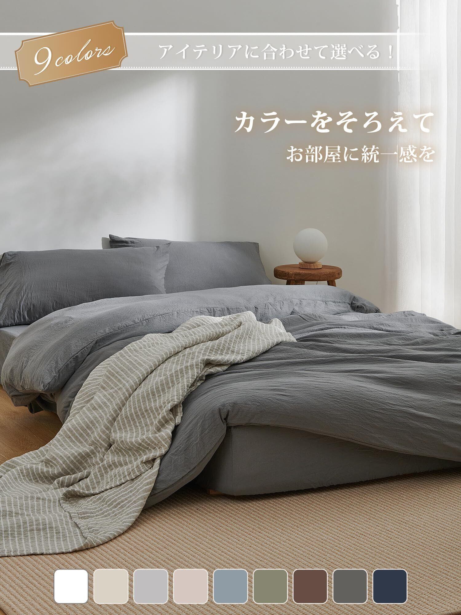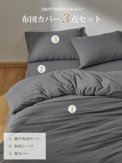 【在庫処分】クモリ(Kumori) 寝具カバーセット 布団カバーセット 洗いざらし シワ加工 水洗い やわらか (掛け布団カバー ボックスシーツ 枕カバー)吸水速乾 丸洗いOK 肌に優しい 洗える 無地 シンプル オールシーズン(シングル・3点セット ダークグレー)
