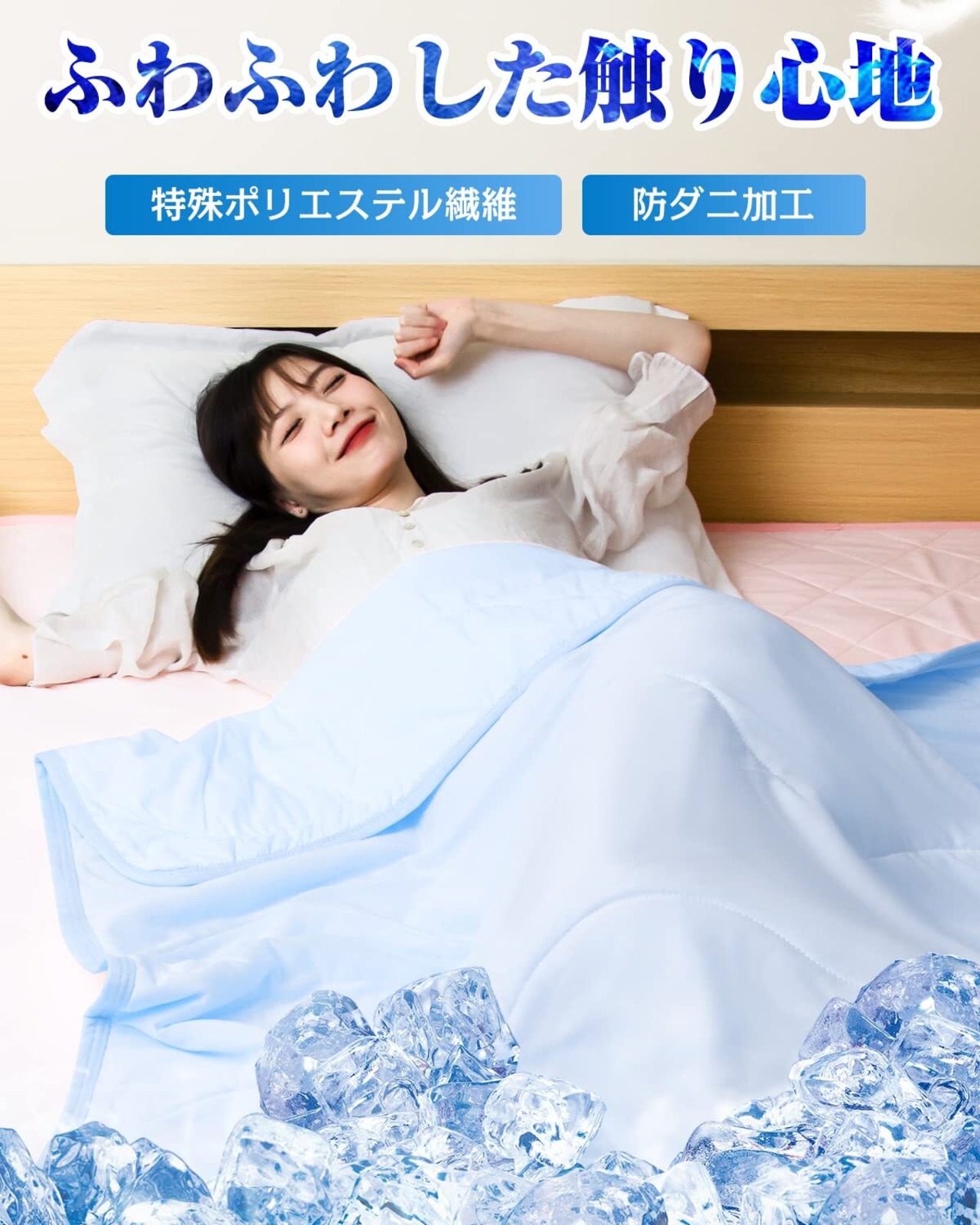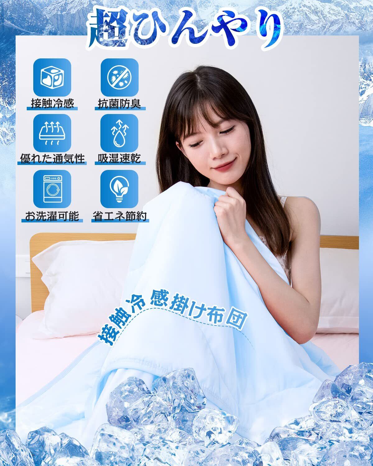 【優れた通気性&抗菌性】表生地が二重構造の極涼生地を採用されている掛け布団は、絹のように滑らかでひんやりとした肌触りを実現!中わたに吸放湿性が高い特殊ポリエステルを取り入れ、こもりがちな湿気を外に逃し、熱を拡散してくれます。また、抗菌加工でニオイや細菌の増殖を抑える抜群的な効果があるのも嬉しいポイントです。衛生的で清潔感を保ち、サラッと快適な寝心地を味わえます。