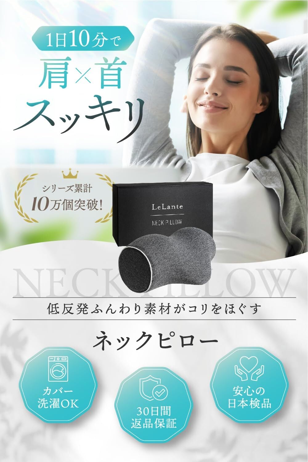 【リラクゼーション】長時間のデスクワークやスマートフォンなどの使用で首や肩に違和感をお持ちの方が非常に増えています。LeLelante 首枕 は自宅で手軽に首・肩まわりのストレッチができるネックピロー(首枕)です。