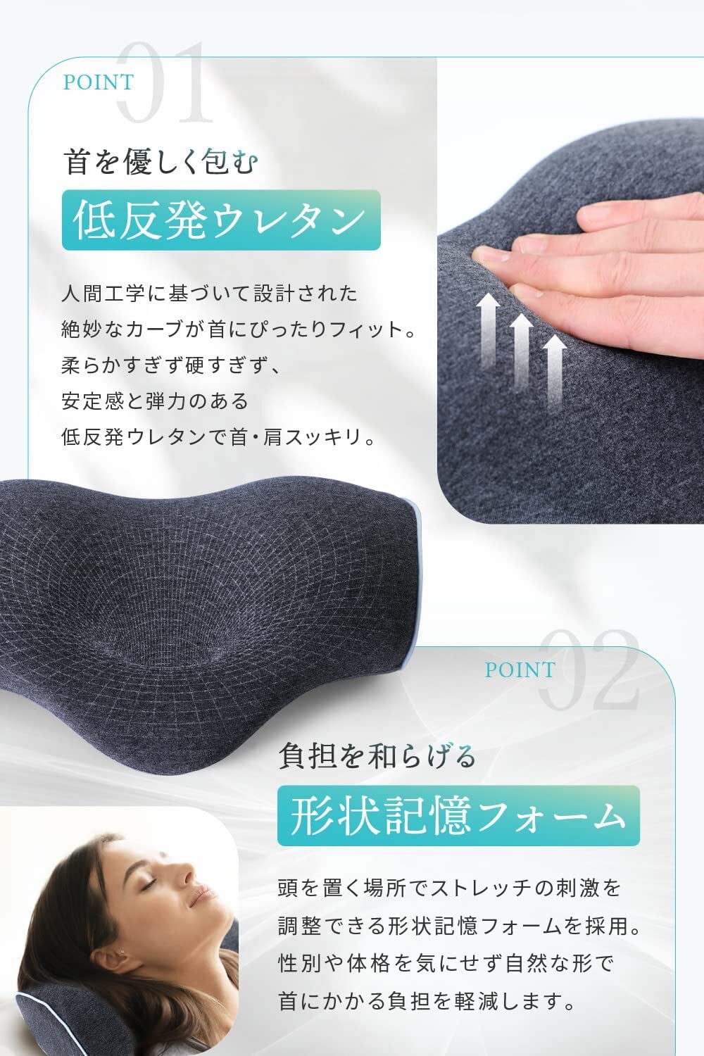 【快適な素材】低反発メモリーフォームが使用され、程よい硬さで首と肩をサポートします。コットン素材のカバーは簡単に洗濯機で手入れて、清潔を保つことができます。