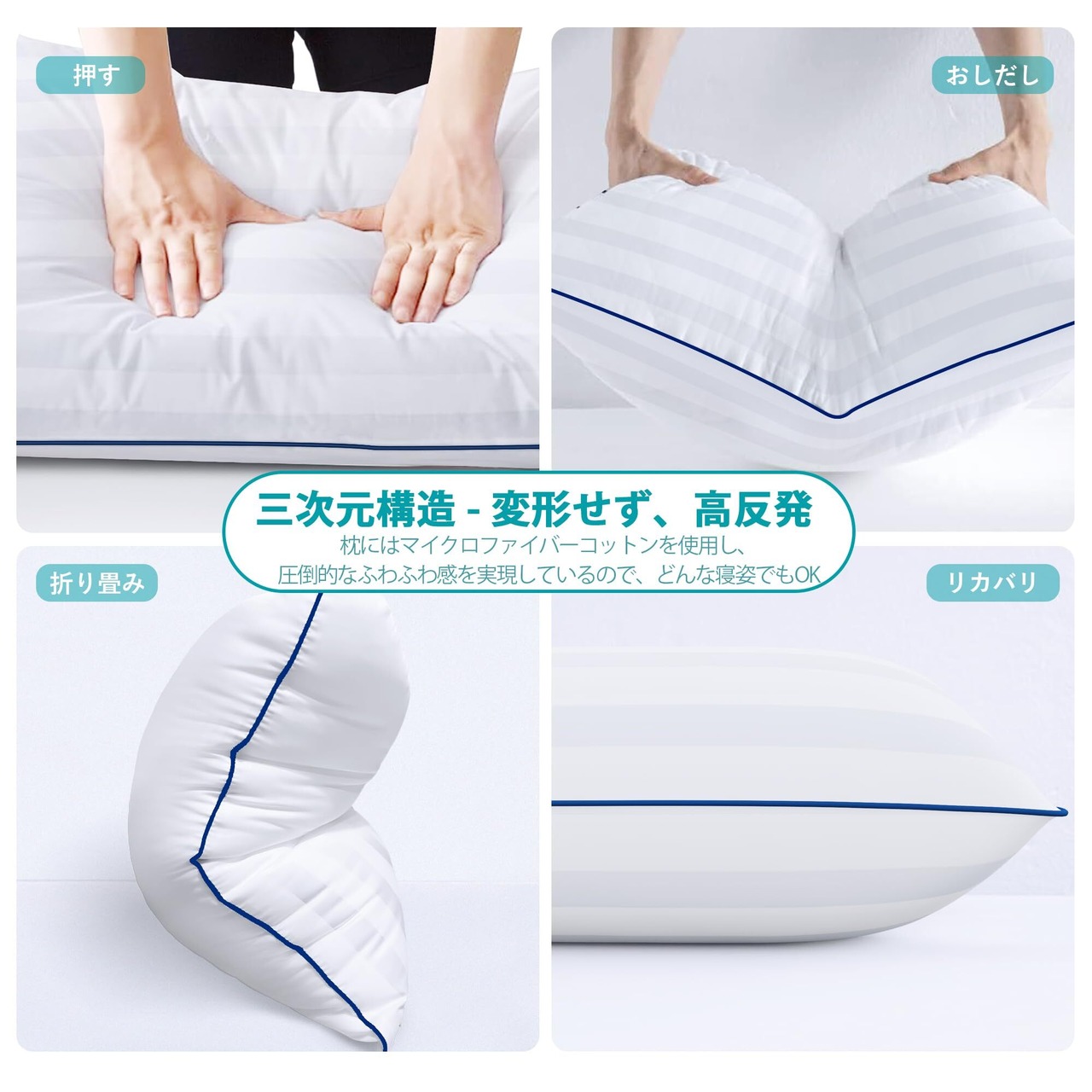 【ホテル仕様 柔らかく快適な感触】枕(サイズ:約63cm×43cm×20cm。重さ:約1.5kg。 枕カバー2個付属。材質です:ポリエステル。)この枕は極めて柔らかい素材で作られており、頭や首に触れると心地よい感触が伝わってきます。快適な睡眠をサポートします。また、通気性にも優れており、蒸れることなく快適な睡眠をサポートします。