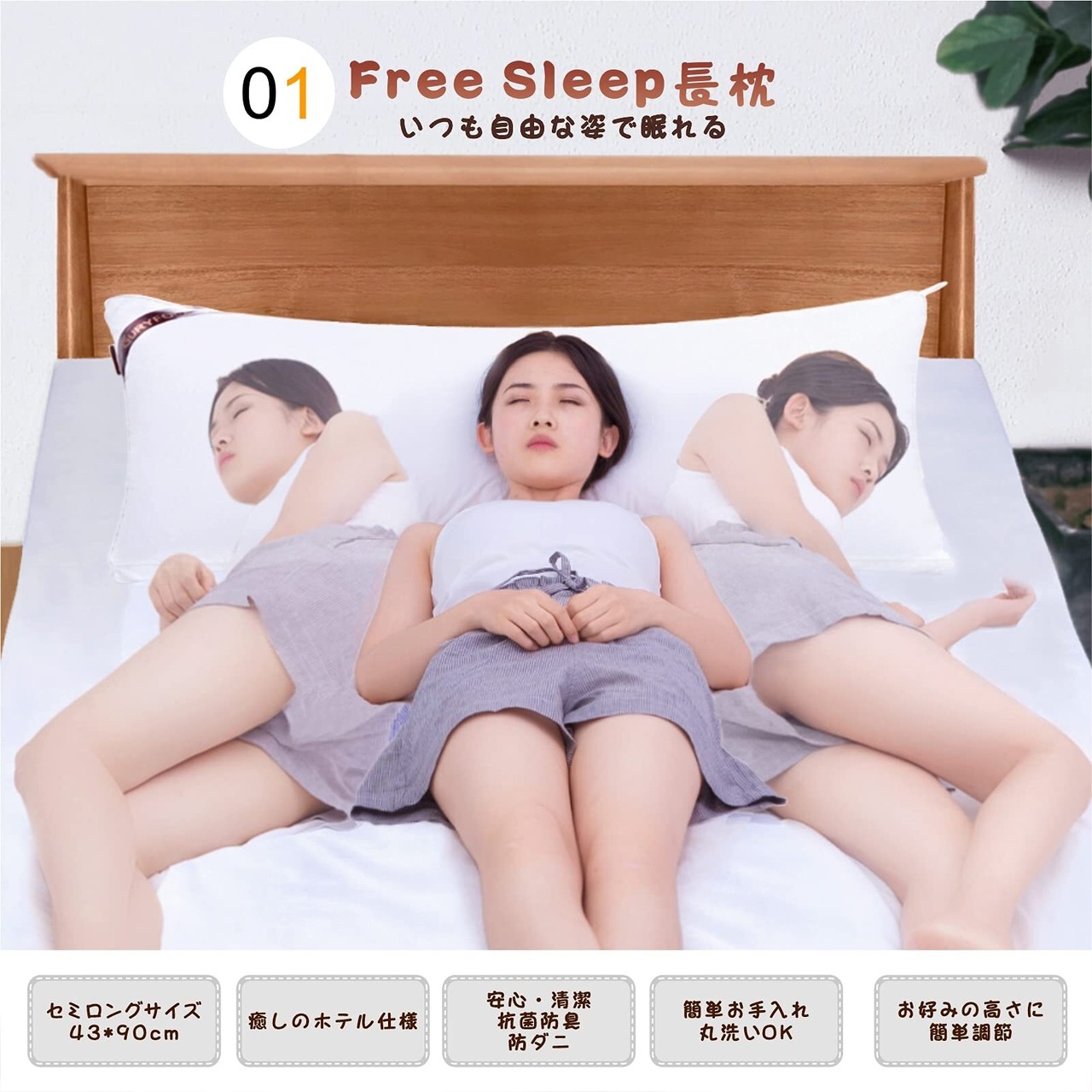 『ベストサイズ』枕 43×90㎝ ロング枕 マクラ 抱き枕 本体 だきまくら ふわふわ 安眠枕 快眠 まくら 大きい枕 ロングクッション 高さ調整 枕头 防ダニ 洗える枕 Soft Long Bed Pillow GURYFOcX