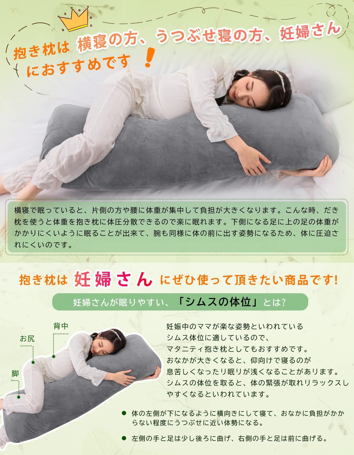 Pamyo 抱き枕 だきまくら 120cm 横向き寝 気持ちいい ふわふわ 妊婦 男女兼用 大きい ロング枕 クッション 長い枕 ロングピロー 縦長 体にフィット 安眠 快眠 カバー洗える グレー