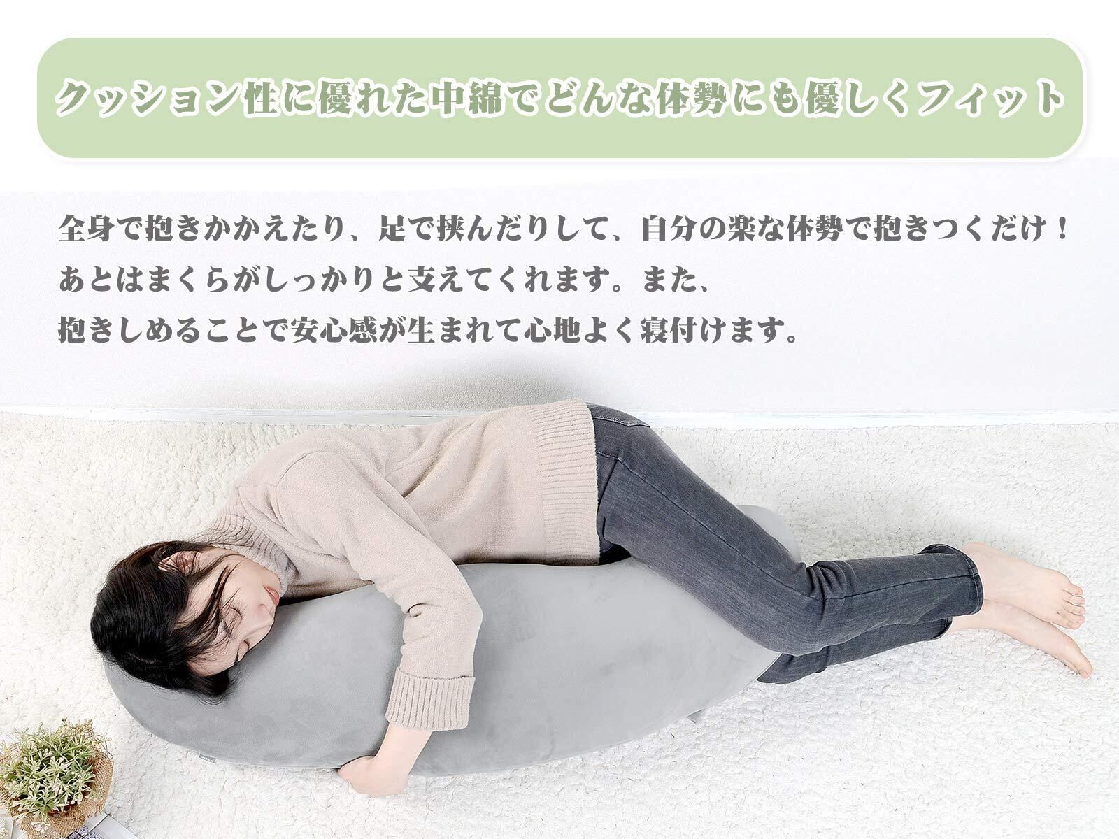 Baibu Home 抱き枕 横向き寝 クッション 体にフィット 気持ちいい 妊婦 だきまくら クッション マタニティ 枕 カバー洗える グレー