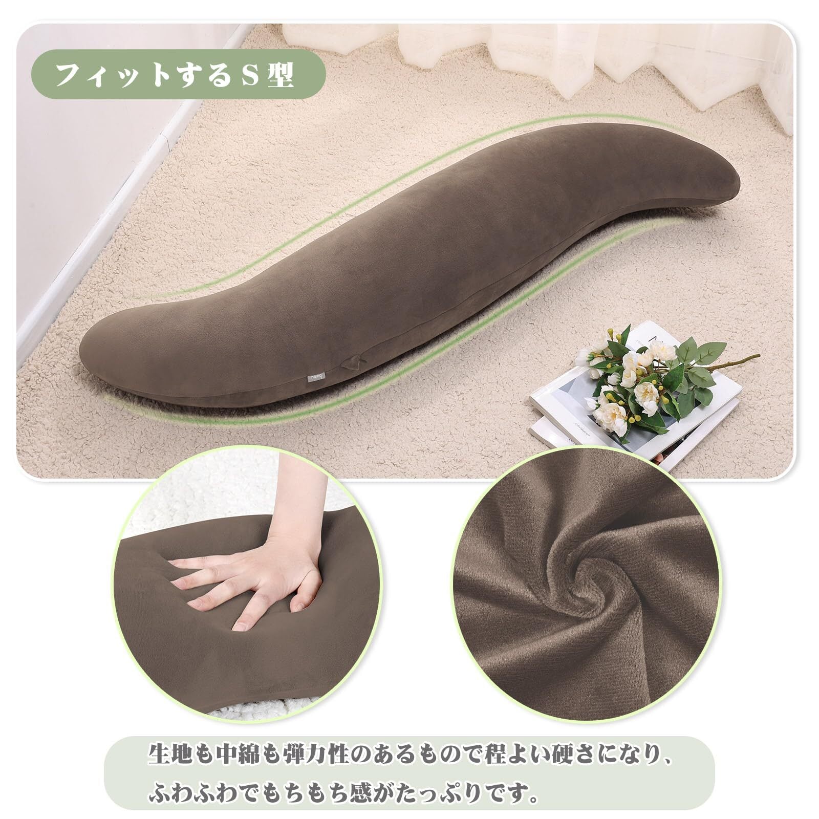 Baibu Home 抱き枕 クッション S字 体にフィット 気持ちいい だきまくら 横向き寝 クッション 妊婦 マタニティ 枕 カバー洗える ブラウン