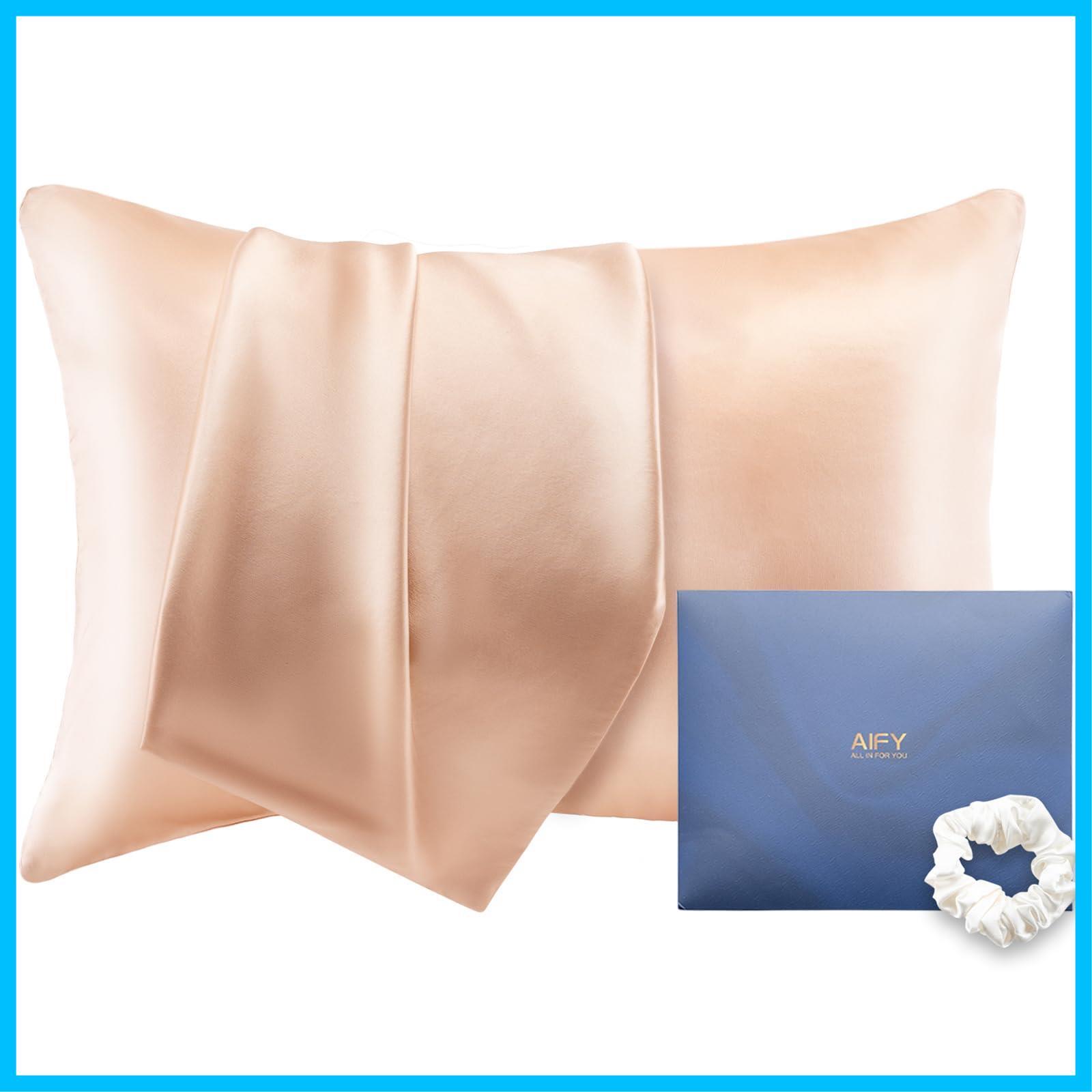 AIFY シルク枕カバー シルク100% まくらカバー 6Aクラス 片面シルク 枕カバー 43 63 美髪 美肌 シルク 枕カバー 洗える 敏感肌に優しい 良い通気性 摩擦軽減 枕カバー シルク 抗菌防臭 乾燥対策 静電気防止 ファスナー式 四季適応 贈り物 1枚セット 43×63cm ベージュピンク