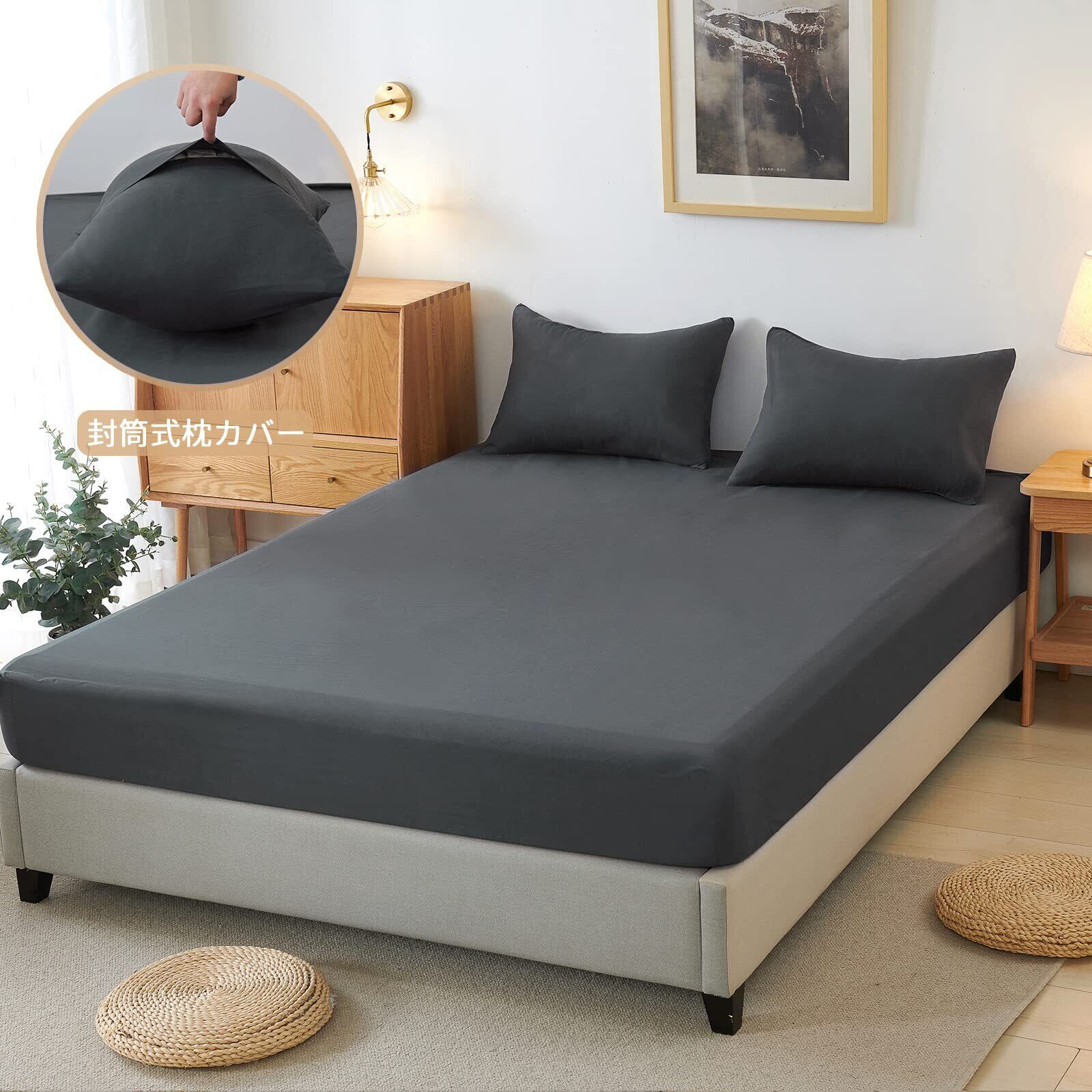 HOdo Home 布団カバー セミダブル 4点セット 掛け布団カバー ベッドシーツ ベッドカバー ボックスシーツ 枕カバー 寝具カバーセット 洋式・和式兼用 洗い替え 速乾タイプ ピーチスキン加工 (ダークグレー セミダブル)