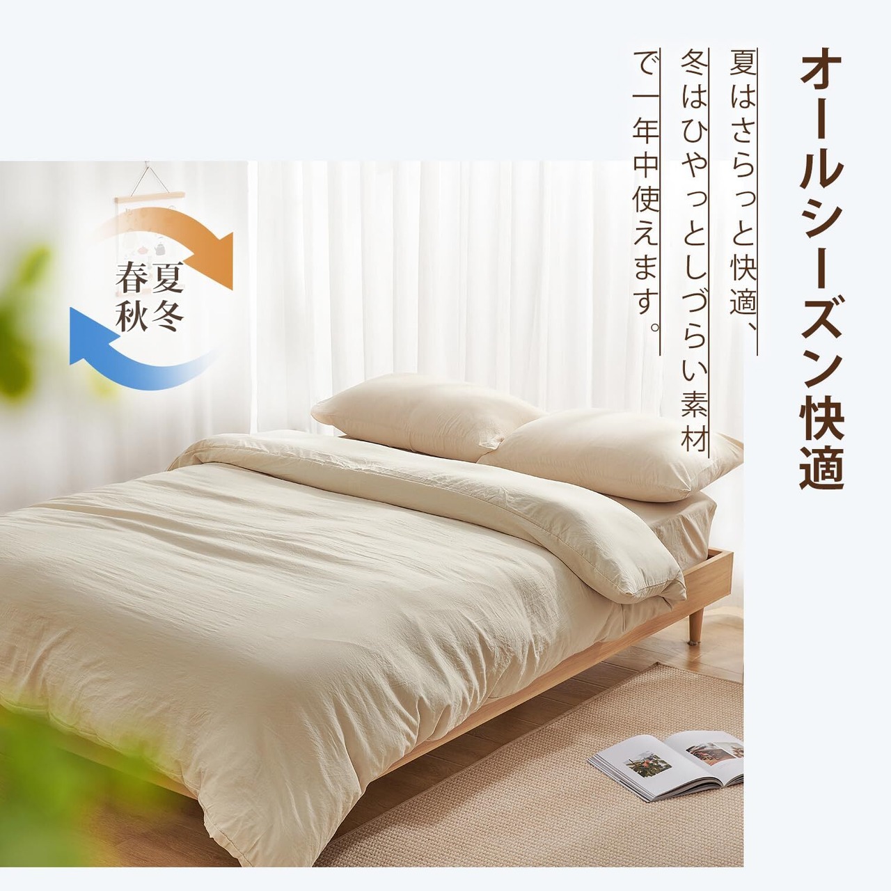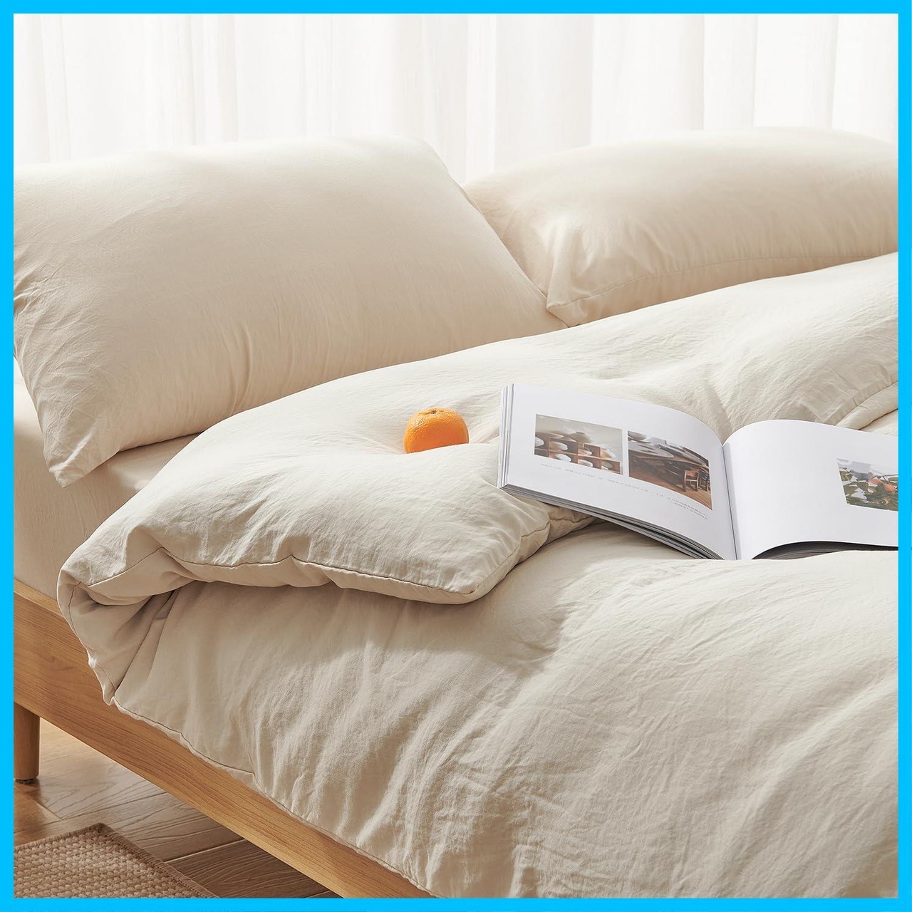 クモリ(Kumori) 掛け布団カバー シングル 洗いざらし 単品売り シワ加工 ピーチスキン しっとり 水洗い 柔らかい 肌に優しい 吸水速乾 丸洗いOK 洗える 無地 シンプル オールシーズン布団カバー 掛ふとんカバー 寝具カバー(150X210cm アイボリー)