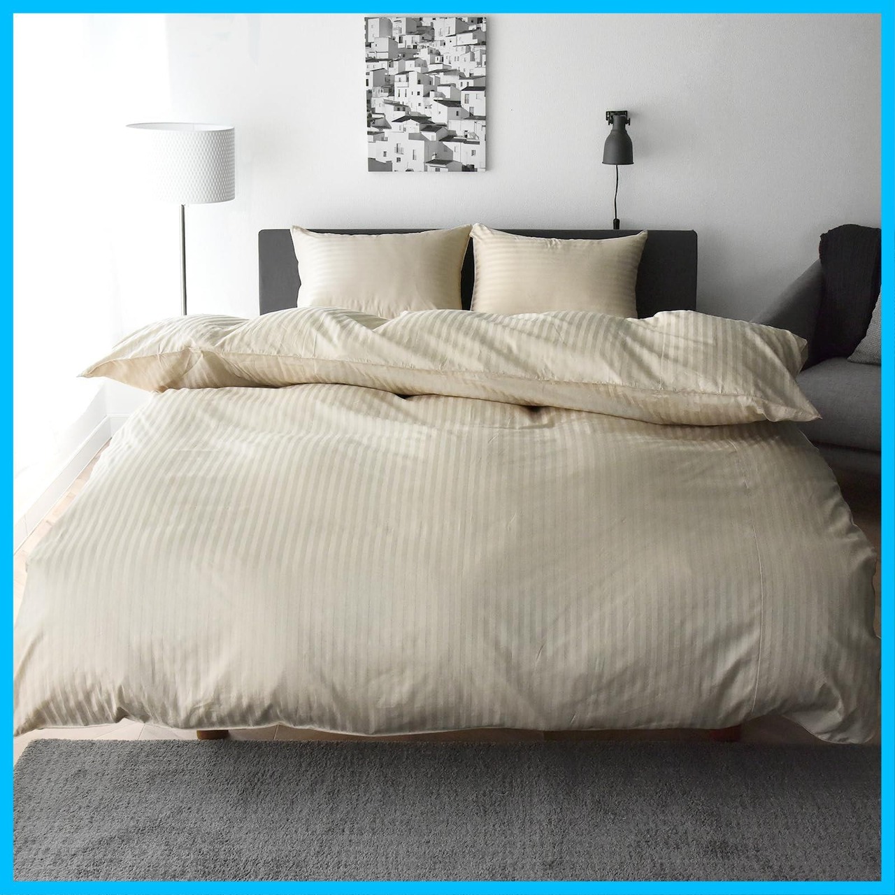 日本製 掛け布団カバー シングル 綿100% サテンストライプ 高密度生地315本 防ダニ 高級ホテル 布団カバー 北欧 おしゃれ コットン 掛けカバー エトワール (シングル, エクルベージュ)
