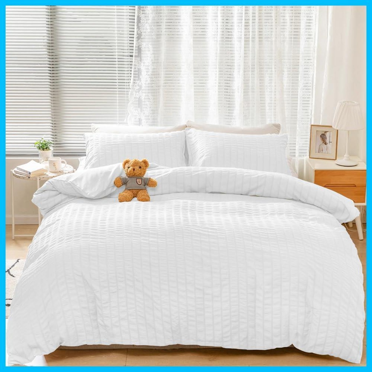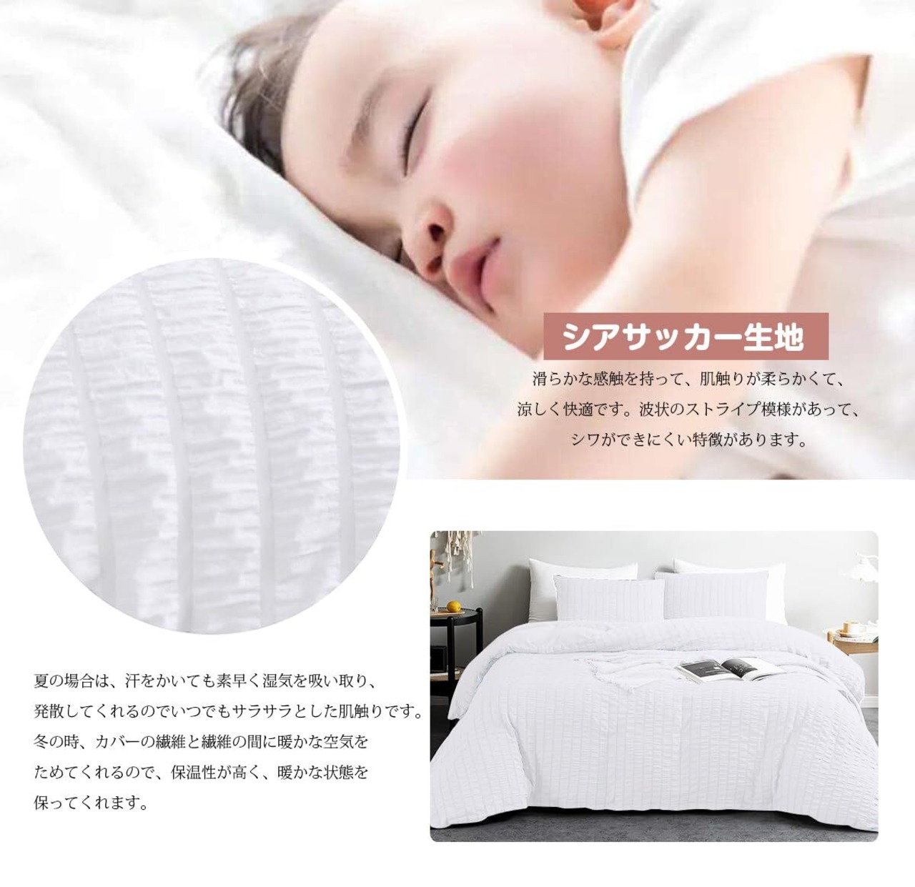 AYO 布団カバー シングル 3点セット フリル付き シアサッカー生地 掛け布団カバー ベッドカバー 枕カバー ボックスシーツ フリル付き 寝具カバーセット かわいい 布団かばー アイボリー 洋式・和式兼用 四季通用 洗い替え速乾 (ホワイト色,シングル・3点セット)