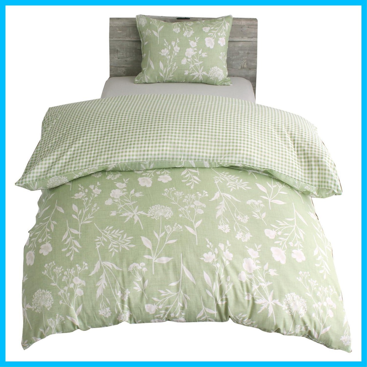 【数量限定】メリーナイト 掛布団カバー 「ボタニカル/ギンガムチェック」 グリーン シングルロング 約150×210cm リバーシブル仕様 両面使える 内側スナップボタン8カ所付き 着脱簡単 綿混素材 速乾 シワになりにくい 洗える 衛生 清潔 オールシーズン MN12154-53