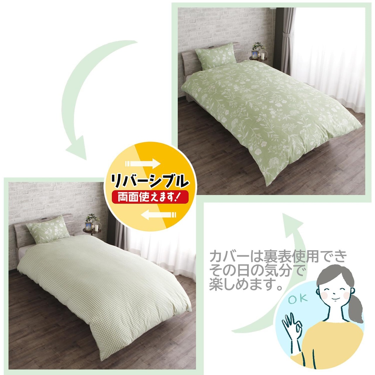カバーは両面使えるリバーシブル仕様。別売りの枕カバー、敷布団カバーとの組み合わせで様々なカラーコーディネートも楽しめます。